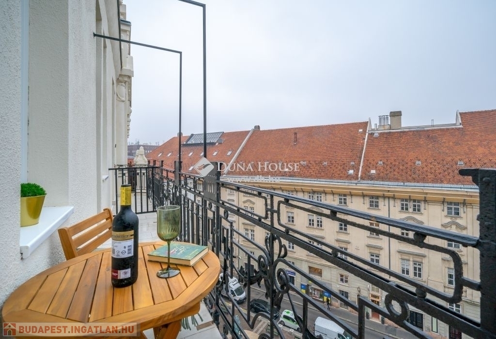 Luxus Otthon a Szomory Dezső Téren – Kivételes Kilátással és Kényelmes ElrendezésselA piacon egyedülálló lehetőséget kínálunk: egy exkluzív, prémium lakást, amely tökéletes harmóniában ötvözi a modern kényelmet és az elegáns dizájnt. A lakás egyedülálló dél-keleti tájolással rendelkezik, lenyűgöző panorámával a Szomory Dezső térre és a Danaidák kútjára, egy olyan környéken, amely a város szívében nyújt nyugodt, mégis élénk atmoszférát.Az ingatlan főbb jellemzői:Alapterület95 m² + 7 m² erkély, amely tökéletes helyszínt biztosít a pihenéshez és a kültéri élményekhez.Elrendezés: A lakásban egy tágas nappali, 2 hálószoba, 2 fürdőszoba (mindegyik külön WC-vel), egy különálló WC és egy elegáns előszoba található.Prémium kivitelezésA 2024-es homlokzati felújítást követően az épület modern és esztétikus megjelenést kapott, míg az ingatlan belső terét a legmagasabb minőségű anyagok és design jellemzik.Fűtés és gépészetA lakás gáz kombi cirkóval, teljes padlófűtéssel és design törülközőszárítókkal biztosítja a maximális komfortot. A fürdőszobák Wellis káddal, Grohe csaptelepekkel és Arezzo design szaniterekkel vannak felszerelve.Minőségi burkolatokhelyiségeket olasz prémium burkolatok (Lafaenza, Vallelunga, Infinity, Naxos, Monocibec) és Bauwerk Unopark enyhén füstölt tölgy fapadló díszíti.Kültéri nyílászárók: A három rétegű, hőszigetelt üveggel szerelt műanyag nyílászárók kiváló hő- és hangszigetelést biztosítanak.Beltéri nyílászárók: Egyedi prémium bútor- és üveg ajtók, amelyek eleganciát és modern stílust adnak a belső térnek.Prémium felszereltségBeépített konyhai gépek: AEG készülékek (hűtőszekrény, indukciós főzőlap, mikrohullámú sütő, sütő, mosogatógép, borhűtő) biztosítják a magas szintű konyhai élményeket.Szórakozás és kényelem: A lakás 3 db, 4K felbontású Samsung TV-vel (65 és 55) és AEG mosógéppel, szárítógéppel van felszerelve.Design és dekoráció: A lakás egyedi tervezésű szagelszívóval és Fisher design hűtő-fűtő klímaberendezésekkel is rendelkezik, hogy minden igényt kielégítsen. A lakás díszítése a Kare, Zara Home és más prémium márkák bútorai és kiegészítői révén éri el a tökéletes összhangot.További információk:Az épület nem műemlék jellegű, 78 albetéttel rendelkezik (lakás, iroda, üzlet).Közös költség: 23.685 Ft/hó, amely tartalmazza a víz és csatorna díját is. A felújítás során egyedi vízórát építettek be.Ár:Lakás ára: 700.000 EURBútorzat és berendezés ára: 65.000 EURA bútorok megvásárlása kötelező!Ez a különleges ingatlan egyedülálló lehetőséget kínál mindazok számára, akik a luxus és a kényelem iránti igényüket a legmagasabb szintre emelnék.Ne hagyja ki ezt a páratlan ajánlatot, és lépjen kapcsolatba velem még ma!