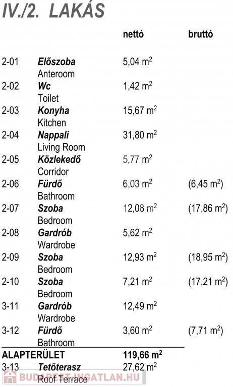 A 147m2-es értékesítési alapterület tartalmazza a nettó 120m2-es lakótéren felül 190cm alatti területek (26m2) és a terasz (28m2) területének 50%-át.