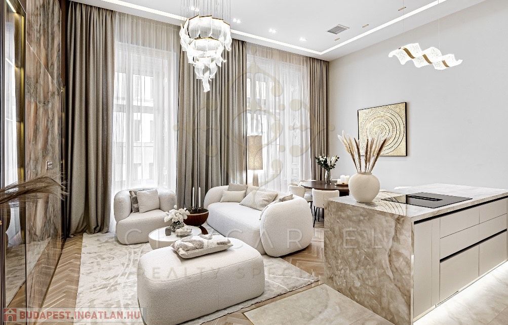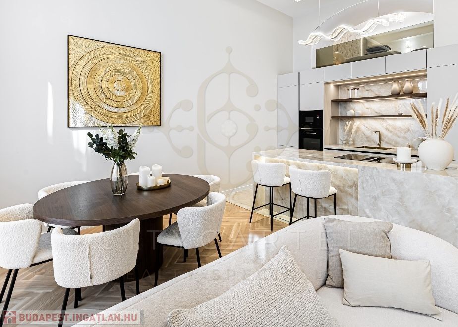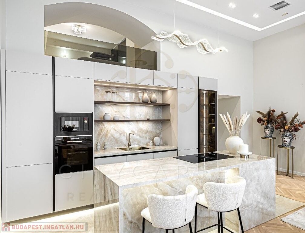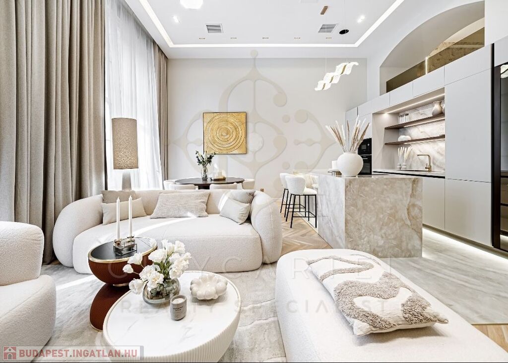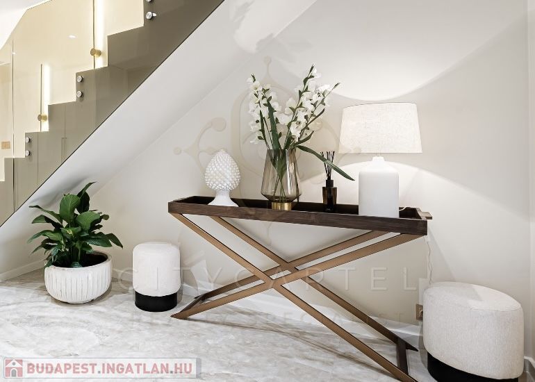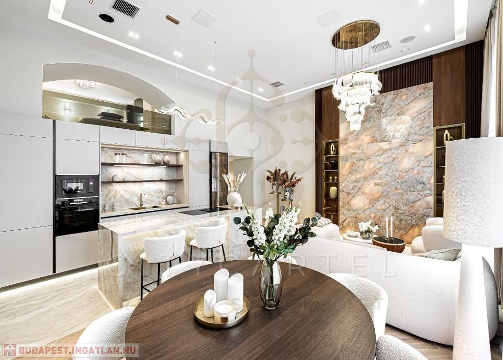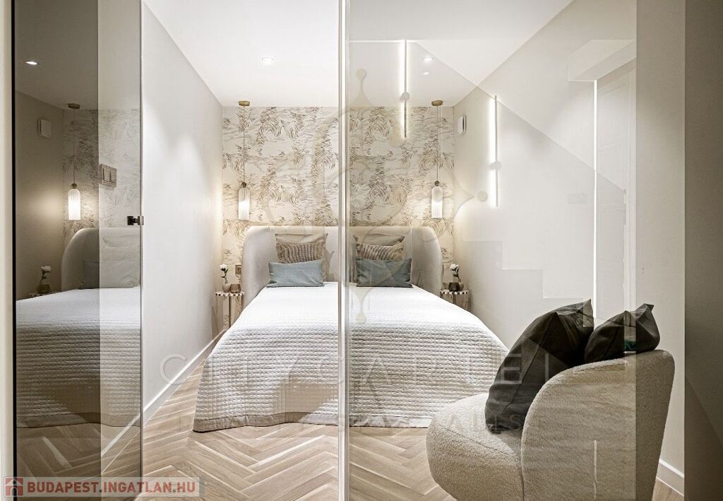 Az V. kerület szívében, presztízsértékű utcában, 96 nm-es, kétszintes, nappali + 2 hálószobás + 2 fürdőszobás luxuslakás, amely minden részletében a minőséget, az eleganciát és a modern otthonérzetet képviseli.