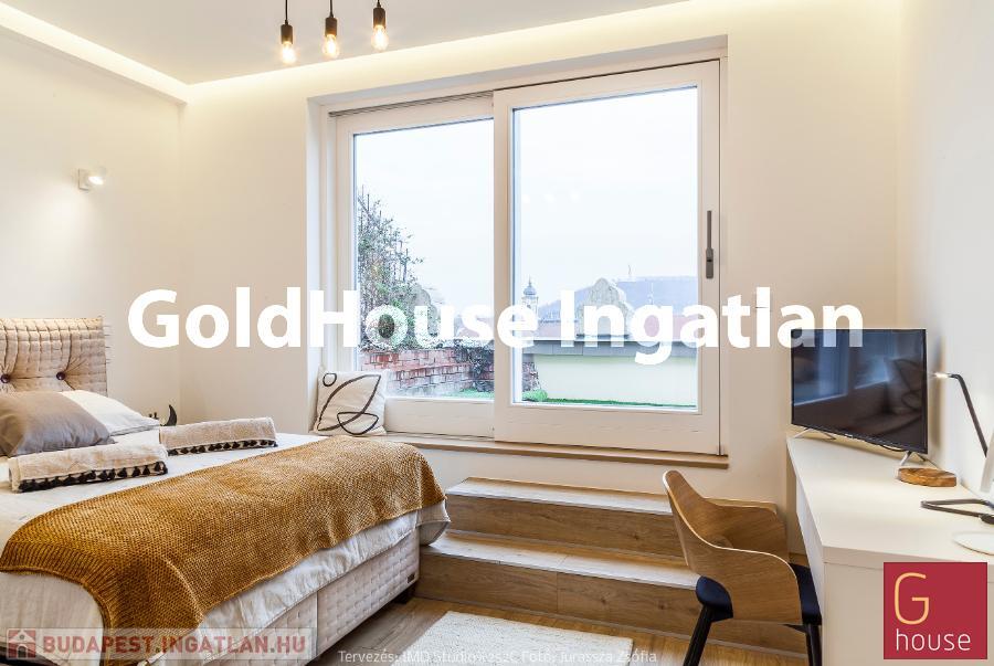 A luxuriour beautifully renovated (2021) and completely furnished 2 bedroom apartment is for long-term rent and for sale in the very heart of Budapest. The spacious and airy apartment consists of a large and sunny living room with dining area, fully equipped kitchen, 1 bedroom resp. study with access to the terrace, 1 bedroom resp. study with cloakroom, 1 bath with bath-tub, shower, and toilet, 1 seperate toilet, 1 large roof terrace (74 m²) with stunning views over the roofs of central Budapest and a room accessible from the terrace with a shower and space for the storage of patio furniture.