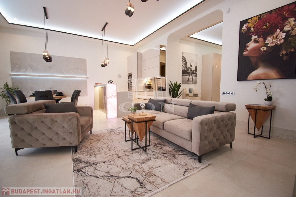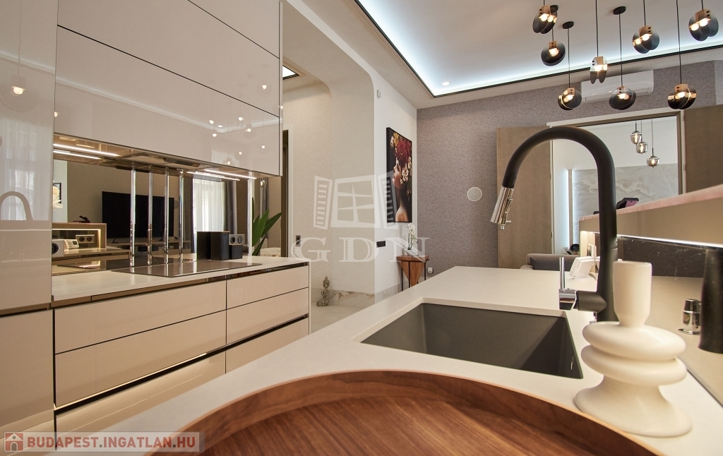 V. kerületben, a belváros szívében, eladásra kínálunk egy 100 m2-es (valóságban 107 m2), 3 szobás (2 háló + amerikai konyhás nappali), dupla komfortos, egyedien és PRÉMIUM minőségben felújított EXKLUZÍV, LUXUS lakást.