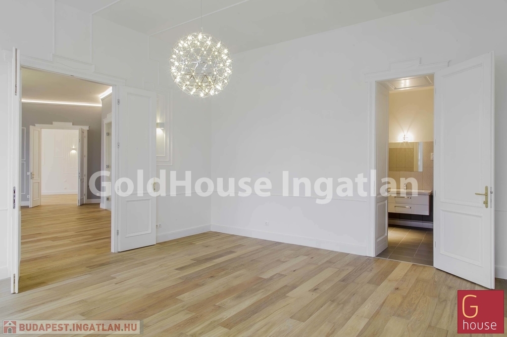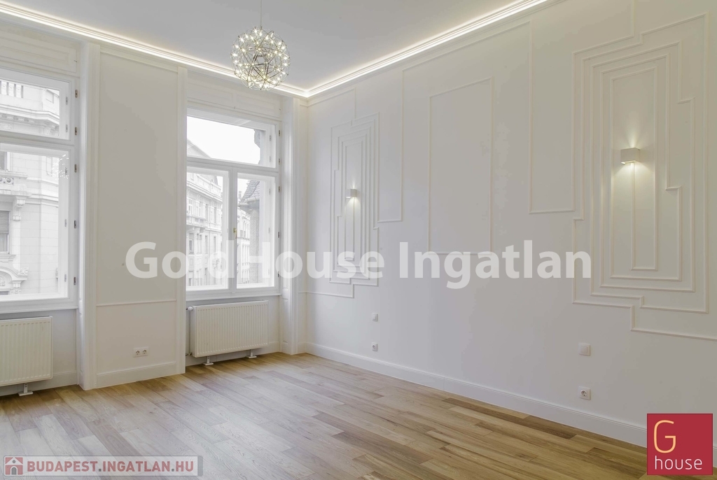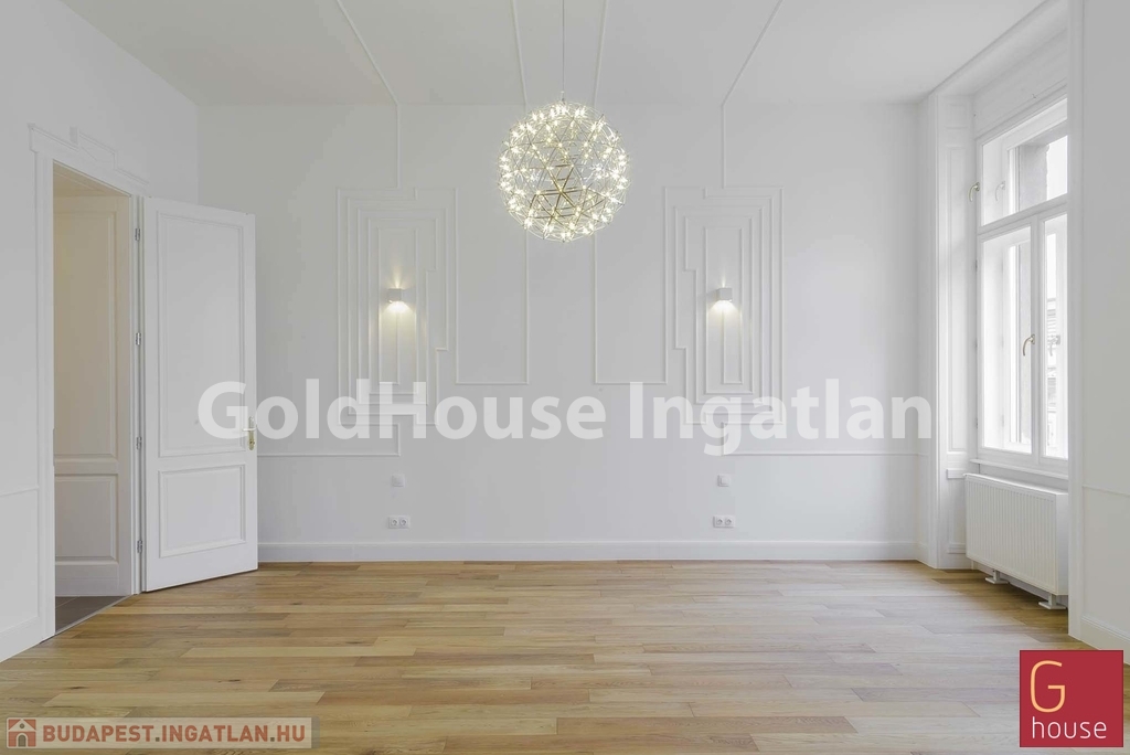 Eladó Budapest belvárosában, az V.kerületben az Irányi utcában egy frissen felújított 176 m2-es luxus lakás.