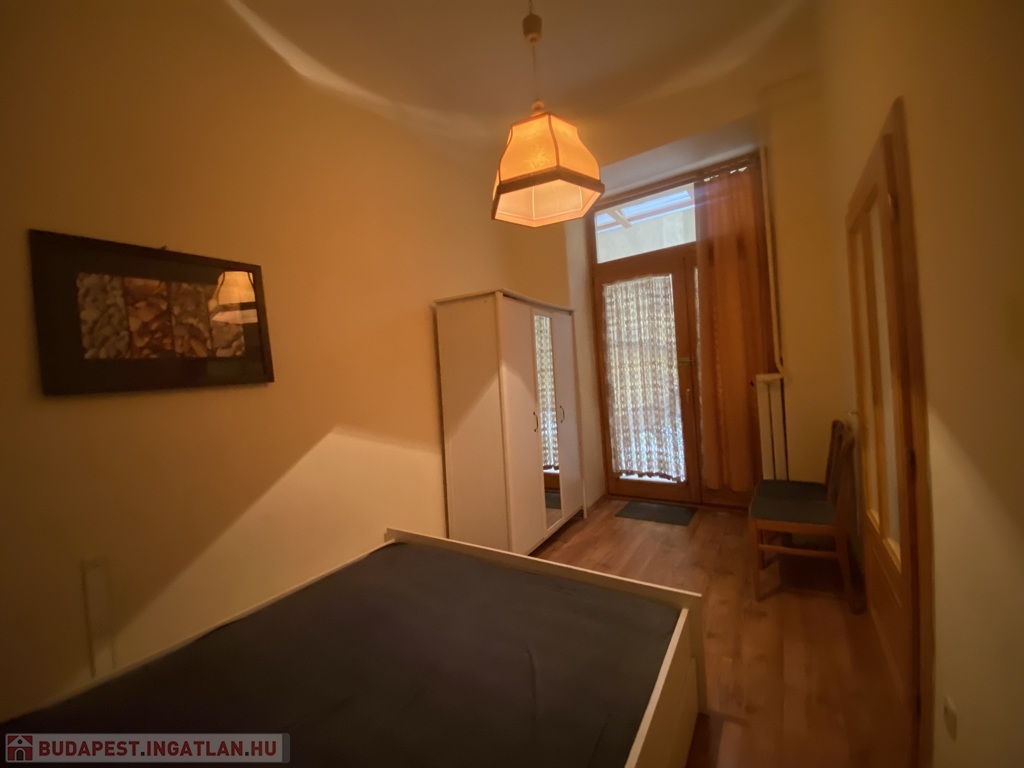 tágas hálószoba, amelyből közvetlen kijárat nyílik egy kis belső udvarra.