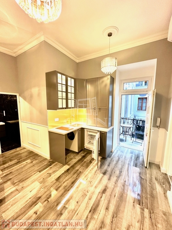 Eladásra kínálunk egy teljes körűen felújított, 26 négyzetméteres lakást Budapest szívében, az Október 6. utcában.