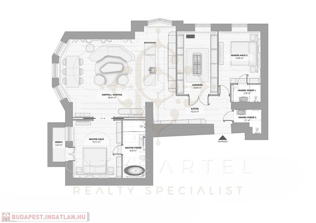 Budapest szívében, az V. kerületben várja új tulajdonosát ez a lenyűgöző, luxus téglalakás, amely egyedülálló lehetőséget kínál a városi élet szerelmeseinek. Az ingatlan 140 négyzetméter alapterülettel rendelkezik, így bőséges teret biztosít a mindennapi kényelmet és stílust keresők számára.