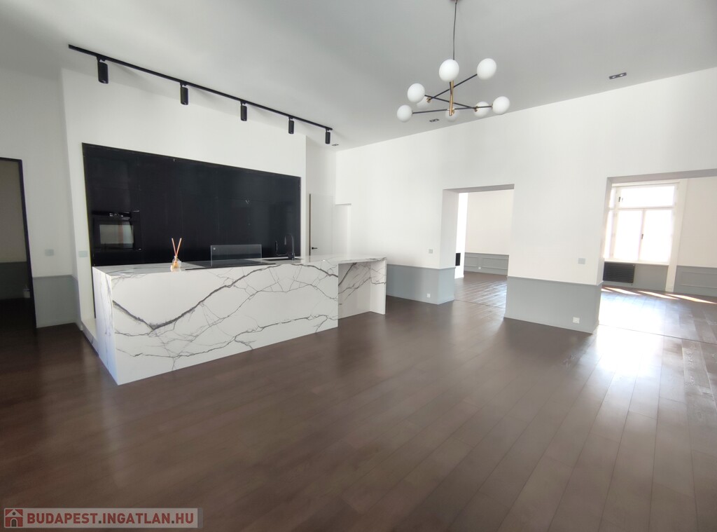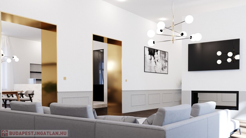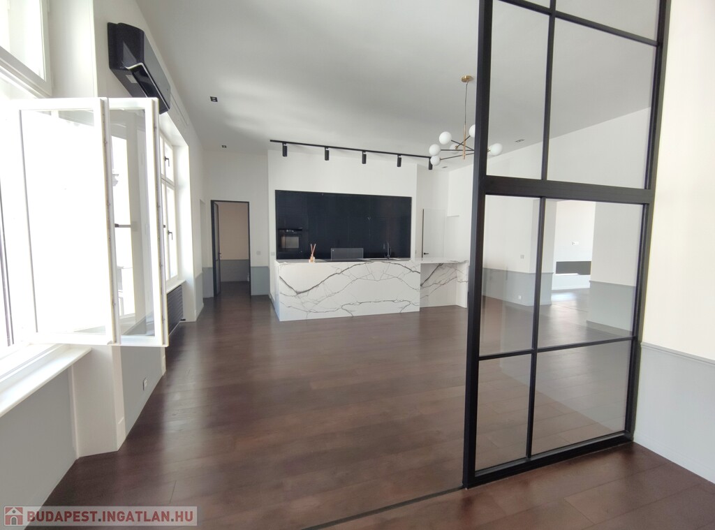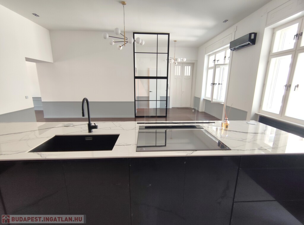 Art deco stílust követő, igényes lakásfelújítás. Nappali, dolgozó + étkező konyha beépített gépekkel + 2 gardróbszoba + 4 hálószoba + 3 fürdőszoba. 3 rétegű ablakok elektromos redőnyökkel.