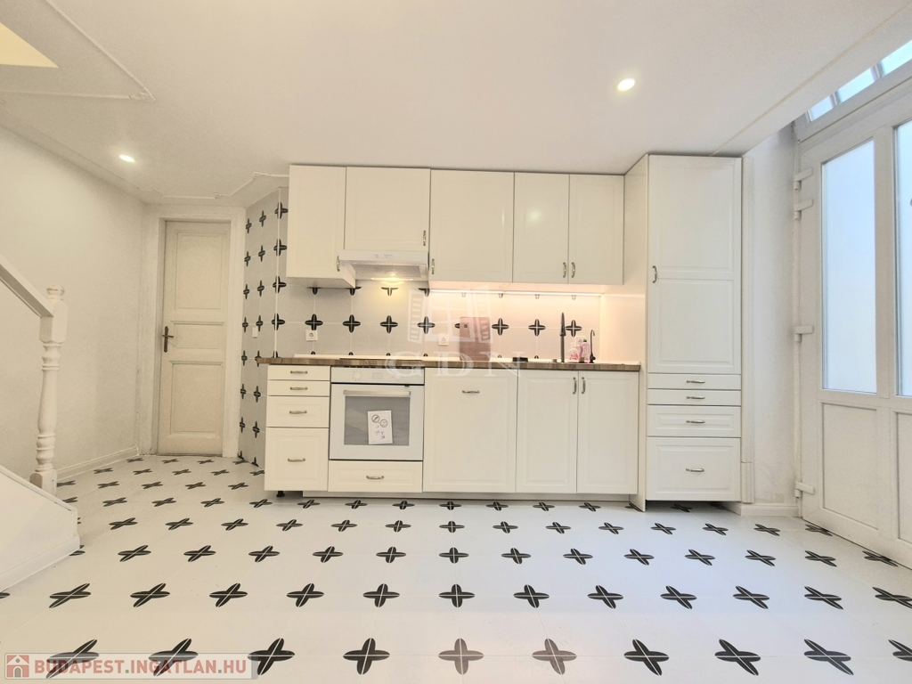 V. kerületben, a Károlyi-kert közelében, jó állapotú, liftes társasház földszintjén, eladásra kínálok, egy udvari nézetű, a tulajdoni lapon 45 m2-es (a valóságban 90 m2) belső kétszintes, 3 szobás, dupla komfortos, műszakilag-esztétikailag felújított ( víz, villany vezetékek cseréjén átesett, műanyag nyílászárókkal, gépesített konyhabútorral szerelt) alacsony fenntartású téglalakást.