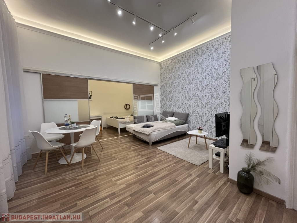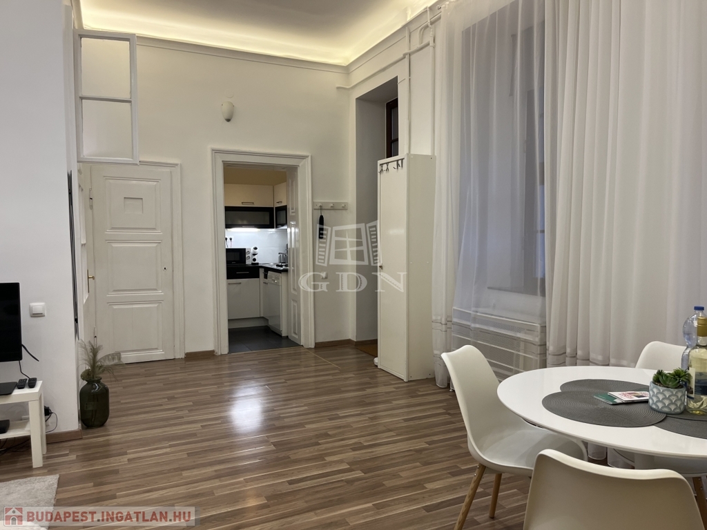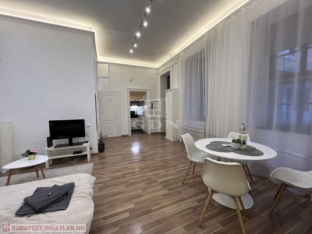 Megvételre kínálunk Budapest V. kerületében, egy 2. emeleti 45 nm alapterületű felújított lakást, teljes berendezéssel együtt.