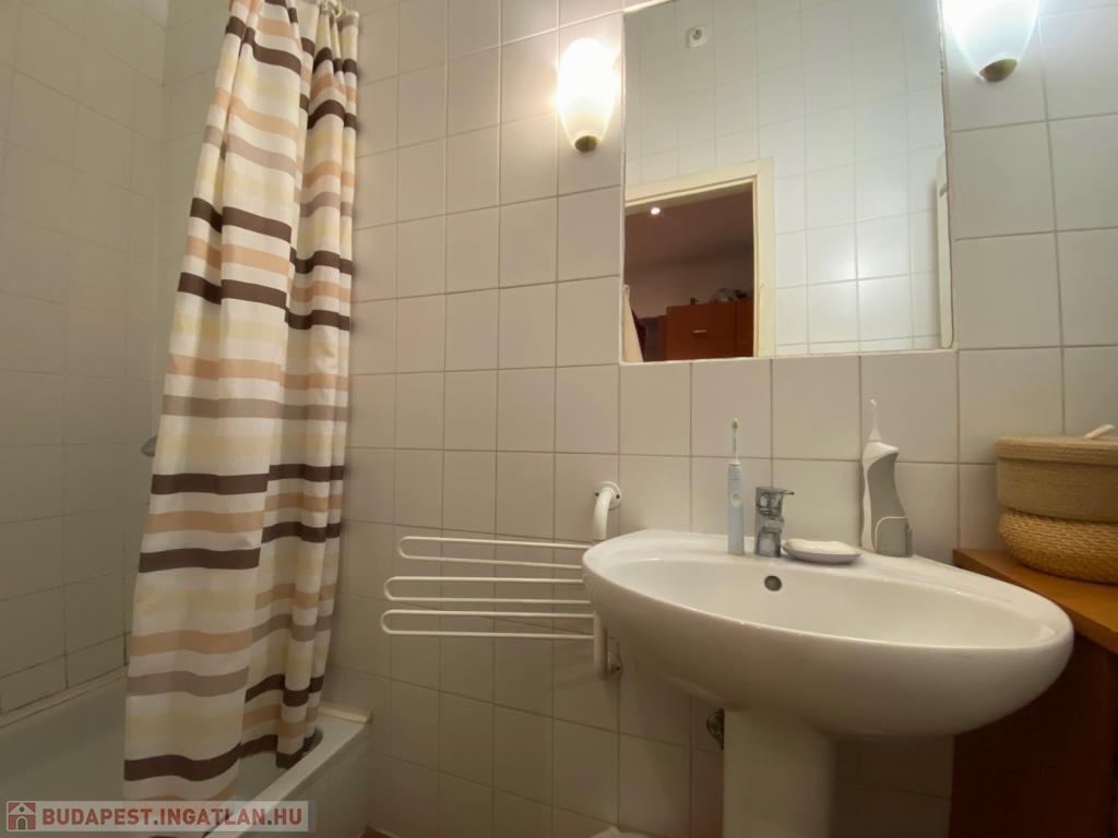 A fürdőszoba zuhanyzós, a meleg vizet gázvízmelegítő szolgáltatja, a WC pedig külön helyiségben van, ablakos.