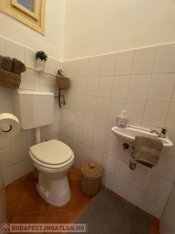 A fürdőszoba zuhanyzós, a meleg vizet gázvízmelegítő szolgáltatja, a WC pedig külön helyiségben van, ablakos.