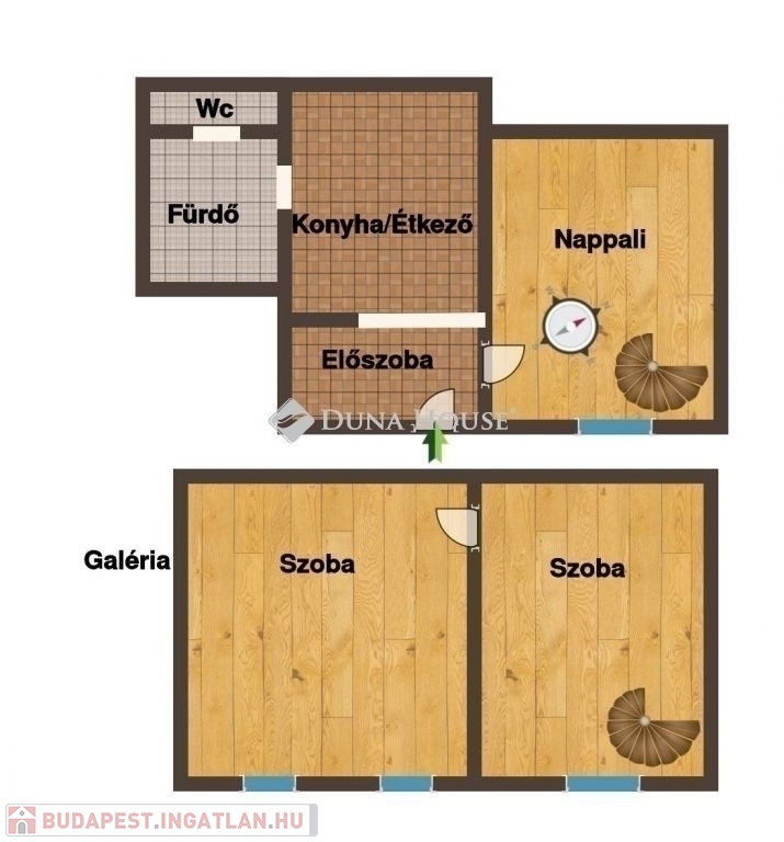 -a nagy belmagasságnak köszönhetően kialakított galérián két teljes értékű hálószoba található (2,6 m belmagasság)