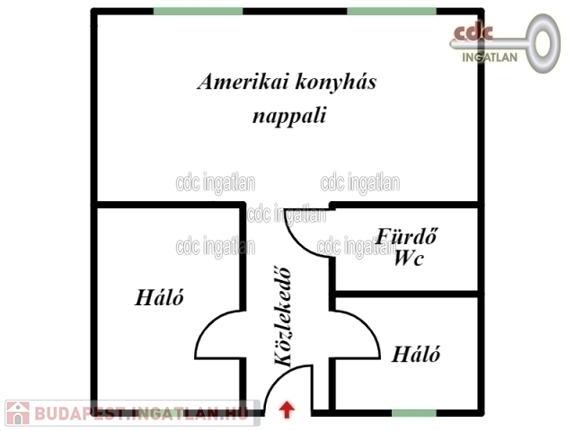 Az ingatlan egy amerikai konyhás nappaliból és 2 külön nyíló hálóból áll. A fürdőszoba kifejezetten nagy! A fürdőszobábanckád és tusoló is van!