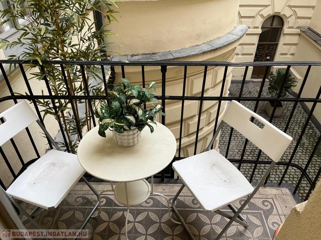 Az 1. emeleti, 41 m²-es lakás praktikus elrendezésű, amelyhez 8 m²-es galéria és egy 2 m²-es terasz is tartozik. Az ablakok és a terasz a gondosan megújított belső udvarra néznek, így a belvárosi elhelyezkedés ellenére csendes, nyugodt életteret biztosítanak.