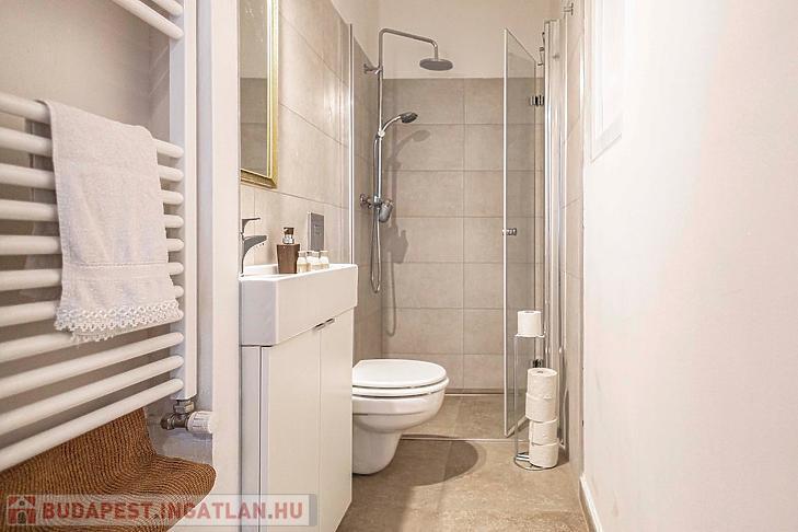 Eladásra kínálunk egy igényesen felújított, 73 m²-es, 1. emeleti nagypolgári lakást a Nagymező utcában. Az ingatlan három szobából áll, melyek közül kettő különnyíló, így praktikus elrendezésű és jól alakítható. A modernizálás során cirkófűtés került beépítésre, valamint két fürdőszoba biztosítja a mindennapi kényelmet. A lakás utcai nézetű, nagy ablakainak és magas belmagasságának köszönhetően rendkívül világos, tágas érzetű és megőrzi a klasszikus nagypolgári hangulatot.