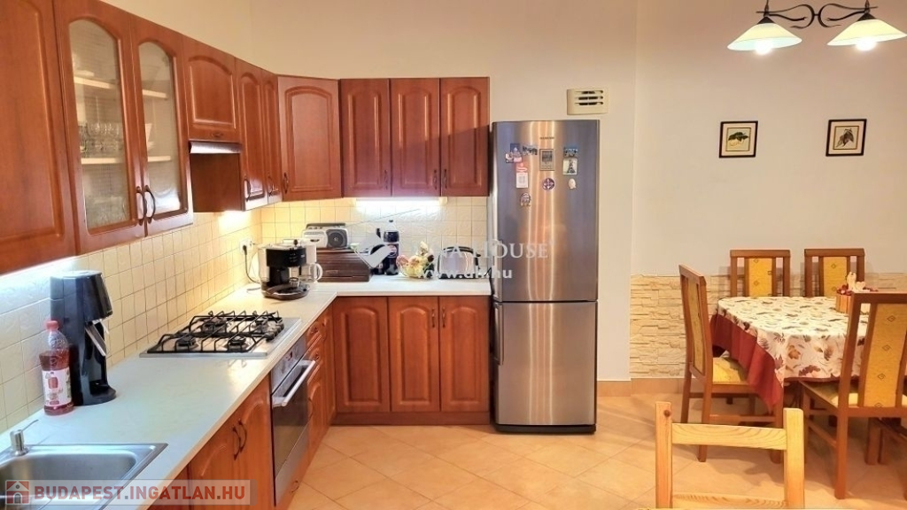A 20 nm-es konyha-étkezőben beépített gázfőzőlap és hőlégkeveréses elektromos sütő található.