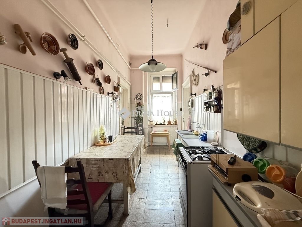 Nagypolgári terek és időtlen elegancia a város szívében, eladó lakás a VI. kerületbenAki a városi élet nyüzsgése mellett vágyik klasszikus karakterre és tágas belső terekre, annak ideális választás lehet ez a különleges hangulatú lakás a Terézváros egyik legszebb utcájában.Az ingatlan Budapest VI. kerületében található, az Andrássy út és az Oktogon közvetlen vonzáskörzetében, mégis meglepően csendes környezetben. A kiváló elhelyezkedés garantálja a gyors közlekedési elérhetőséget, hiszen néhány perc séta mind a kisföldalatti, mind a villamosvonalak megállója.Az ingatlan főbb jellemzői:117 m²-es lakótér, jól kihasználható, tágas helyiségekkelHárom napfényes, utcai szoba, plusz egy félszoba, amely ideális lehet dolgozónak, gyerekszobának vagy tárolónakHarmadik emeleti elhelyezkedés (az épületben lift nincs)Külön konyha, melyhez külön kamra is tartozikFürdő és WC külön helyiségbenA fűtésről gázcirkó gondoskodik, a meleg vizet gázbojler szolgáltatjaAz ingatlan felújításra szorul, így kiváló alap lehet egyéni elképzelések megvalósításáhozEredeti fa nyílászárók az utcafronton, míg az udvari oldalon már modern műanyag ablakok kerültek beépítésreA bejárati ajtó nemrég lett felújítvaA közös költség 70.000 FtA társasház állapota és fejlesztései:Az épület klasszikus, nagypolgári stílusban épült, karakteres homlokzattal és körfolyosós belső térrel.Az elmúlt évek során számos felújítás történt: a tetőszerkezet korszerűsítése már befejeződött, jelenleg pedig a körfolyosó megújítása van folyamatban.Miért érdemes megnézni?Ez a lakás nem csupán a kivételes lokációja és térérzete miatt különleges, hanem azért is, mert szinte bármilyen elképzelés megvalósítható benne legyen szó családi otthon kialakításáról vagy befektetési célú átalakításról.A városi életstílus, a patinás környezet és a jövőbeli értéknövekedés egyszerre garantált.