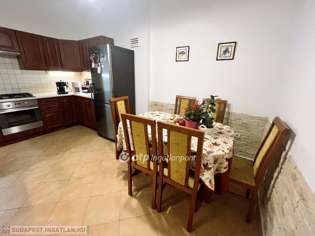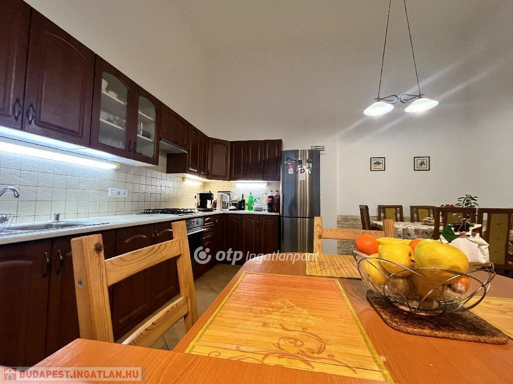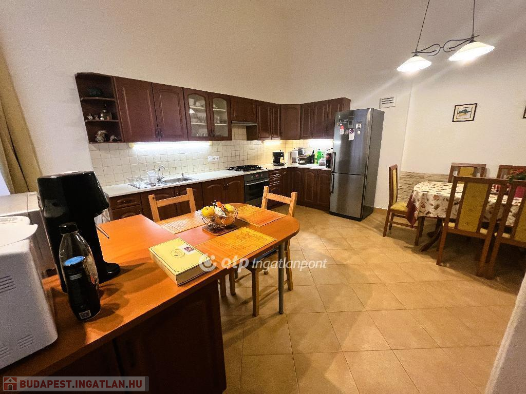 Konyha: Tágas, 22 m2-es konyha-étkező beépített gázfőzőlappal és elektromos sütővel.
