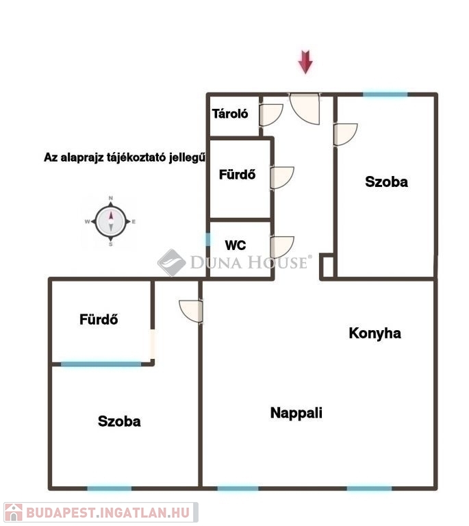 A lakás rendkívül jó beosztású, minden helyiség külön nyílik, napfényes és tágas terekkel.