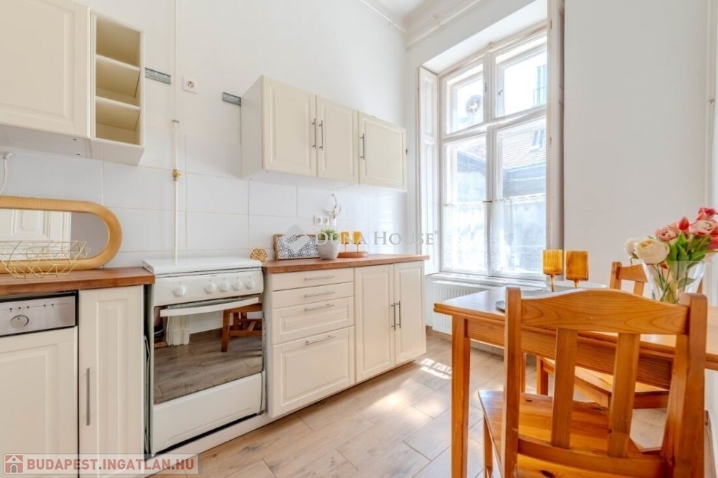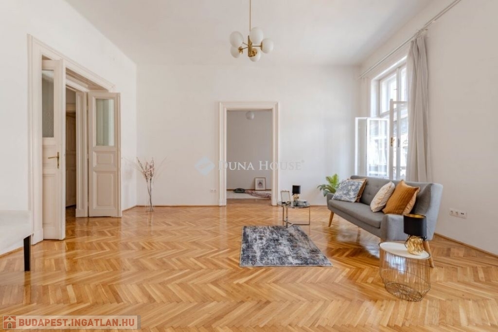 Ez az ingatlan megőrizte eredeti, nagypolgári hangulatát. A lakás tágas, világos nappalija természetes fényben úszik, ideális a pihenéshez vagy vendégek fogadásához. A hálószobák külön nyílóak, a tágas ablakok pedig mindig napfényes, barátságos hangulatot teremtenek. A belső terek rugalmasan alakíthatók, így könnyen személyre szabhatóak.