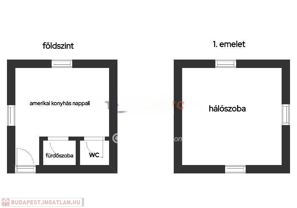 Az alsó szinten egy amerikai konyhás, világos nappali, étkezőrész, tágas fürdőszoba, valamint különálló mellékhelyiség kapott helyet, az elrendezés akár plusz szobával is bővíthető.