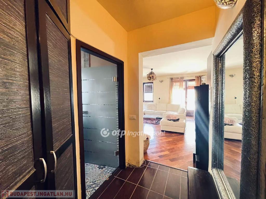 A minőségi anyaghasználat, például a tömörfa parketta és olasz burkolatok, igényességet és tartósságot sugall. A lakás egészét világos, szellős terek és letisztult elegancia jellemzi. A nyári melegben mindkét szinten modern klímaberendezés biztosítja a kellemes hőérzetet.