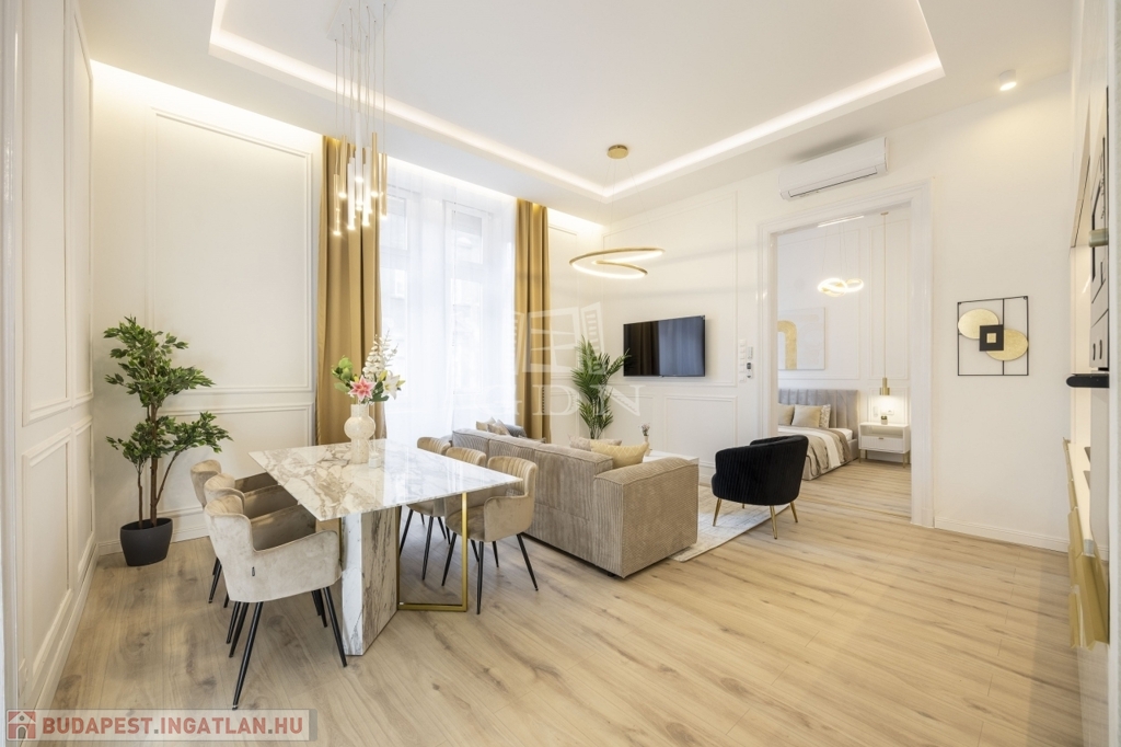 Lépj be Budapest szívébe! Ez a 88 m²-es, teljesen felújított, prémium lakás a VI. kerületben vár rád, az Oktogon és a Nyugati tér közelében. Az első emeleti ingatlan egy 1880-as években épült történelmi házban helyezkedik el – a lakás modern, stílusos és azonnal költözhető vagy kiadható. ️