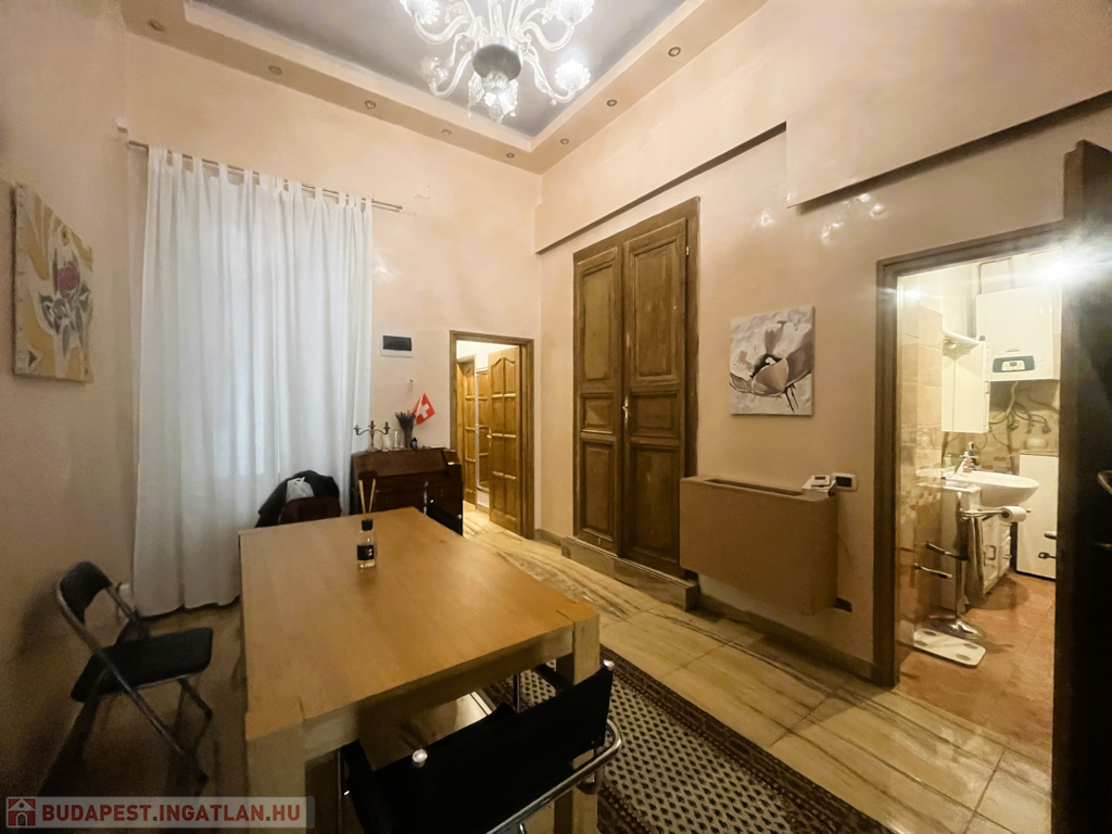 Budapest szívében, a Pesti Broadway területén, eladó egy különleges hangulatú, 90 m²-es, 2+1 félszobás, duplakomfortos lakás, amely egyaránt ideális otthonnak és befektetésnek – akár két különálló lakássá is alakítható.