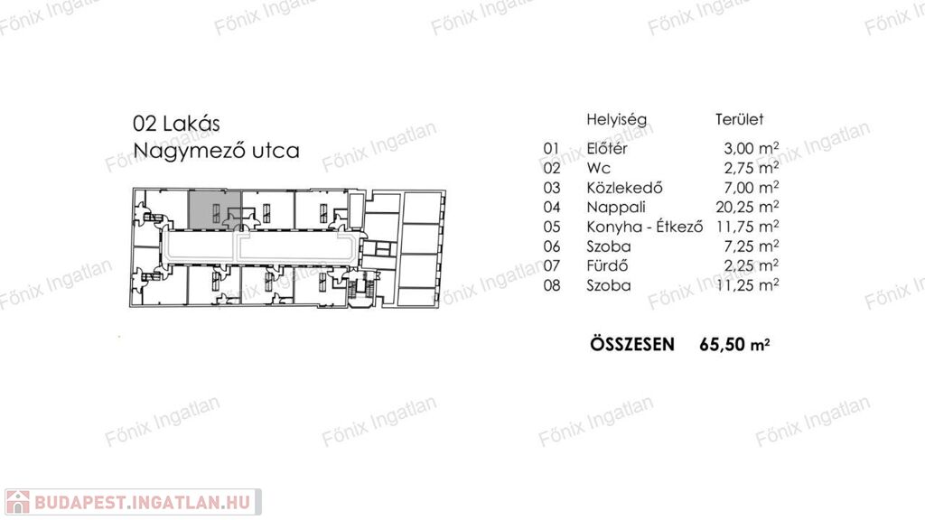 2-es lakás: 65,5 m2 - nappali + 2 szoba