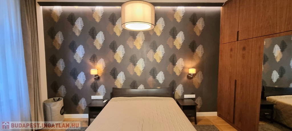 A nagyobb hálószobában két beépített nagyméretű gardróbszekrény is segíti a könnyebb tárolást.