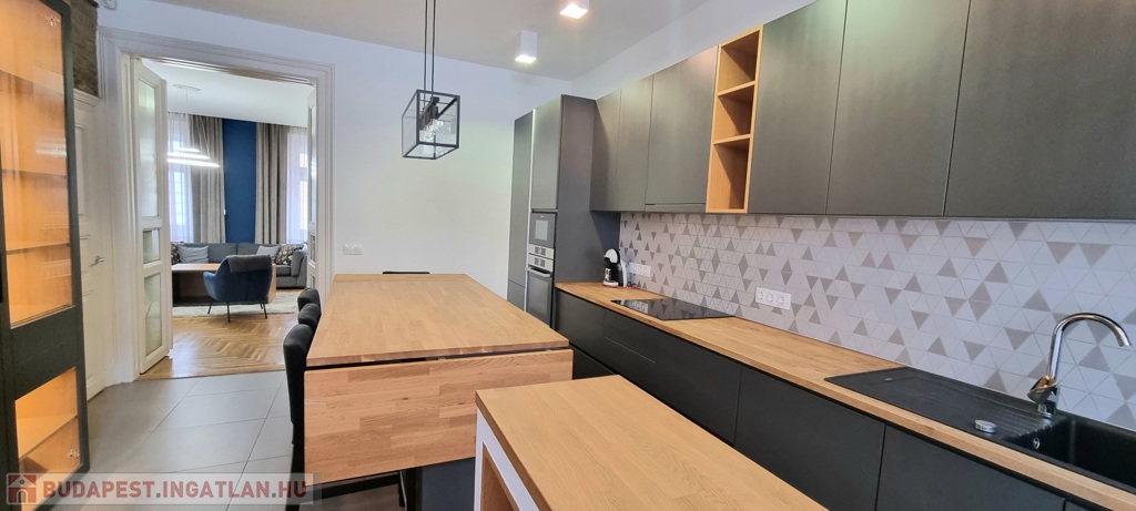 VI. kerület, Andrássy út sarkánál, Szív utca 28 szám alatt eladó tehermentes, azonnal birtokba vehető, 1/1 tulajdonban lévő, teljeskörűen és magas színvonalon felújított, lakberendező által megálmodott, bútorozott, kifogástalan állapotú, 3. emeleti, modern, igényes, 88 nm-es, nappali + 3 hálós saroklakás jó állapotú épületben.