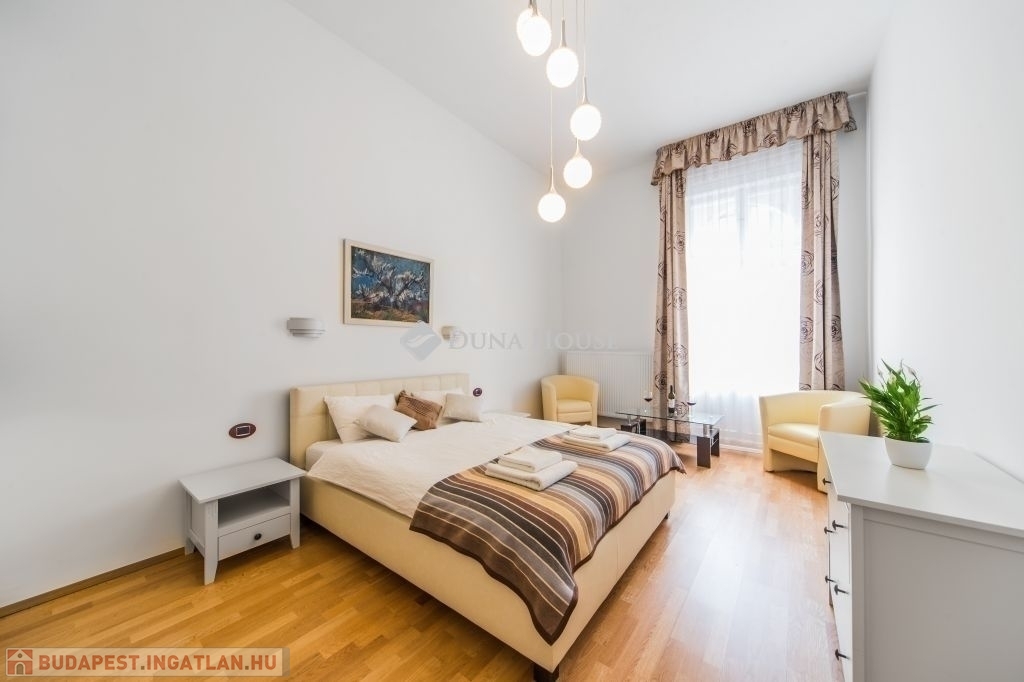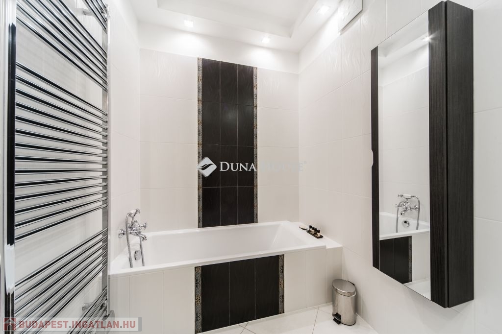 Budapest szívében, a Szent István Bazilika közvetlen közelében kínálunk megvételre egy tágas, 3 hálószobás, teljesen felújított lakást. Az ingatlan egy amerikai konyhás nappalival, két fürdőszobával és egy külön WC-vel rendelkezik. Az egyik fürdőszobában kád, míg a másikban egy nagy méretű, épített mészkő zuhanyzó található a kényelem és a stílus jegyében.