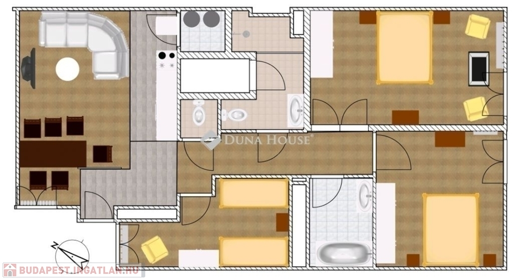 A kondenzációs kazánnal működő fűtés helyiségenként szabályozható, biztosítva az optimális hőmérsékletet és melegvíz-ellátást. A nappali és mindhárom hálószoba légkondicionált, így a lakás minden évszakban kellemes klímát kínál.