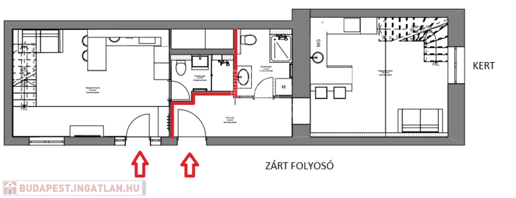 Tulajdoni lap szerint az ingatlan 62 négyzetméter, de az átalakítás során a hasznos alapterület 95 négyzetméter lett.