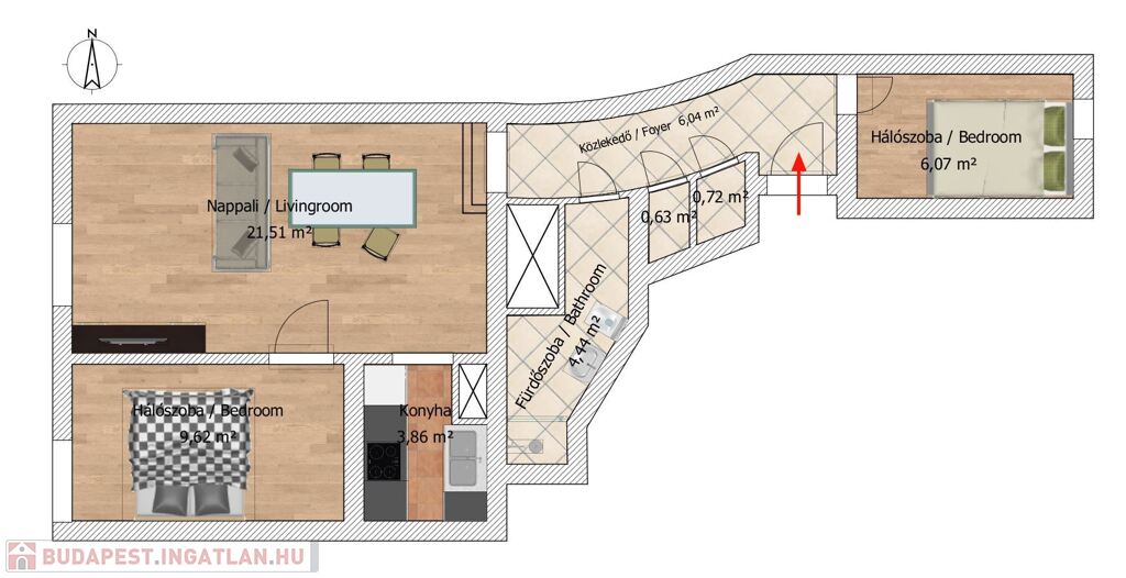 Kiemelt tulajdonságok: Alapterület: 55 m²