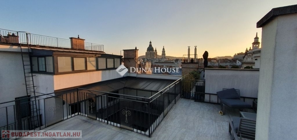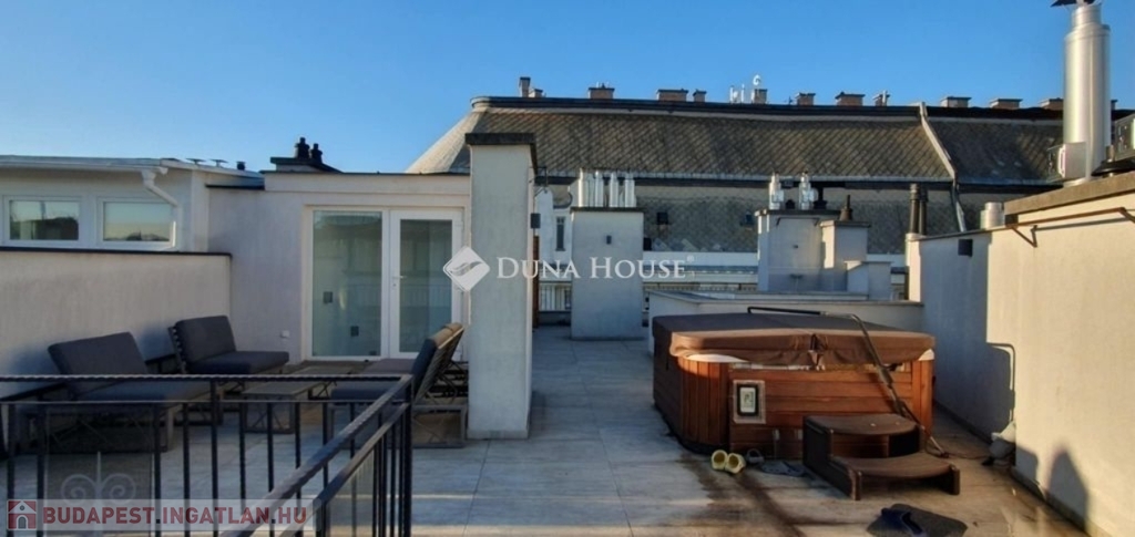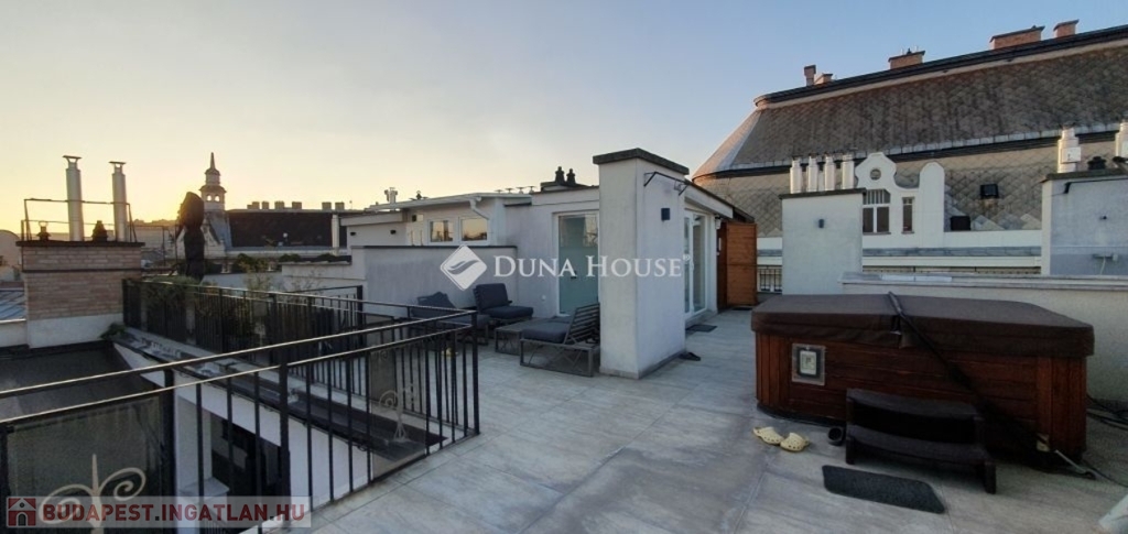 Eladó penthouse lakás Budapest szívében, a 6. kerületben lenyűgöző panorámával a Bazilikára - English belowKivételes lehetőség a város egyik legkeresettebb részén: eladó egy 89 m²-es, napfényes penthouse lakás a Terézváros elegáns utcái felett, az 5. emeleten, közvetlen rálátással a Bazilikára.A lakás elrendezése modern és kifinomult: impozáns nappali + 3 külön nyíló szoba, 2 kényelmes fürdőszoba, valamint egy intimebb terasz, amely az egyik hálószobához kapcsolódik. A nyugati tájolás egész napos természetes fényt és kellemes hangulatot ad, míg a padlófűtés és a 4 beépített klíma a tökéletes komfortot biztosítja.A nappaliból egy elegáns belső lépcső vezet fel az ingatlan valódi ékkövéhez: a 70 m²-es, saját használatú tetőteraszhoz, ahol szauna és jacuzzi teremtenek exkluzív, privát wellness-élményt mindezt a város fölött, hamisítatlan pesti hangulatban.Mindenek felettA penthouse tágas teraszáról páratlan látvány nyílik: a pesti bérházak karakteres, történelmi tetősora szinte díszletként terül el a szemünk előtt, s kicsit távolabb tekintve a Bazilika méltóságteljes kupolája rajzolódik ki. Ez a panoráma a város különleges, időtlen hangulatát idézi, egyszerre modern és romantikus és minden napszakban új arcát mutatja.Kinek ajánlom?Ez az ingatlan azoknak szól, akik nem csupán egy lakást keresnek, hanem egy olyan életteret, amely valóban kiemelkedik a városi kínálatból. Azoknak, akik értékelik a minőséget, a letisztult eleganciát, a privát luxust és a belváros felett megélhető csendes pillanatokat.A 70 m²-es tetőterasz, a szauna, a jacuzzi, a lenyűgöző panoráma és a magas szintű műszaki felszereltség olyan életstílust kínál, amelyet csak kevesen választanak de akik választják, pontosan tudják, miért.További információért és megtekintésért kérem, keressen bizalommal! Penthouse apartment for sale in the heart of Budapest, District 6 with a stunning panorama of the BasilicaA unique opportunity in one of the citys most sought-after areas: a 89 m² sunny penthouse apartment is for sale above the elegant streets of Terézváros, on the 5th floor, with a direct view of the Basilica.The layout of the apartment is modern and refined: an impressive living room + 3 separate bedrooms, 2 comfortable bathrooms, and an intimate terrace connected to one of the bedrooms. The western orientation ensures natural light and a pleasant atmosphere throughout the day, while underfloor heating and 4 built-in air-conditioning units provide full comfort.From the living room, an elegant internal staircase leads to the most exceptional highlight of the property: the 70 m² private rooftop terrace, where a sauna and jacuzzi create an exclusive, private wellness experience above the city.Above AllFrom the spacious terrace of the penthouse, a unique view opens up: the characteristic, historic rooftops of Pests residential buildings unfold in front of us like a theatrical backdrop, and looking slightly further, the dignified dome of the Basilica rises into view. This panorama evokes the citys special, timeless atmosphere simultaneously modern and romantic and reveals a new face at every moment of the day.Who do I recommend it to?This listing is for those who are not simply looking for a new home, but for a living space that truly stands out from the rest. For those who appreciate quality, refined elegance, private luxury, and the peaceful moments that can be experienced above the bustle of the city center.The exceptional features of the property the 70 m² rooftop terrace, the sauna, the jacuzzi, the breathtaking panorama, and the high-level technical equipment offer a lifestyle chosen only by a few, and those who choose it know exactly why.For more information and to schedule a viewing, please feel free to contact me!