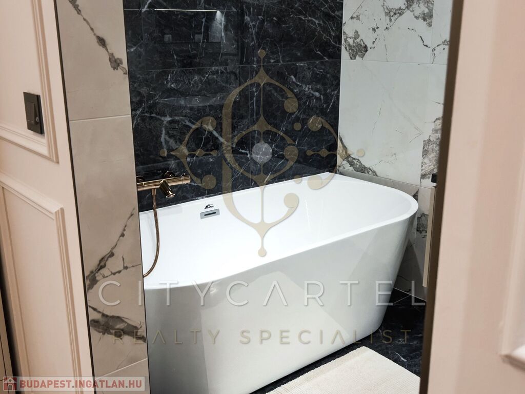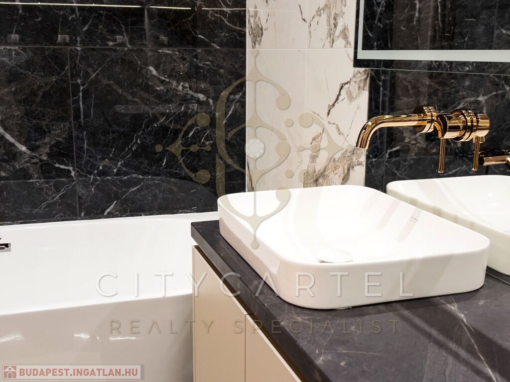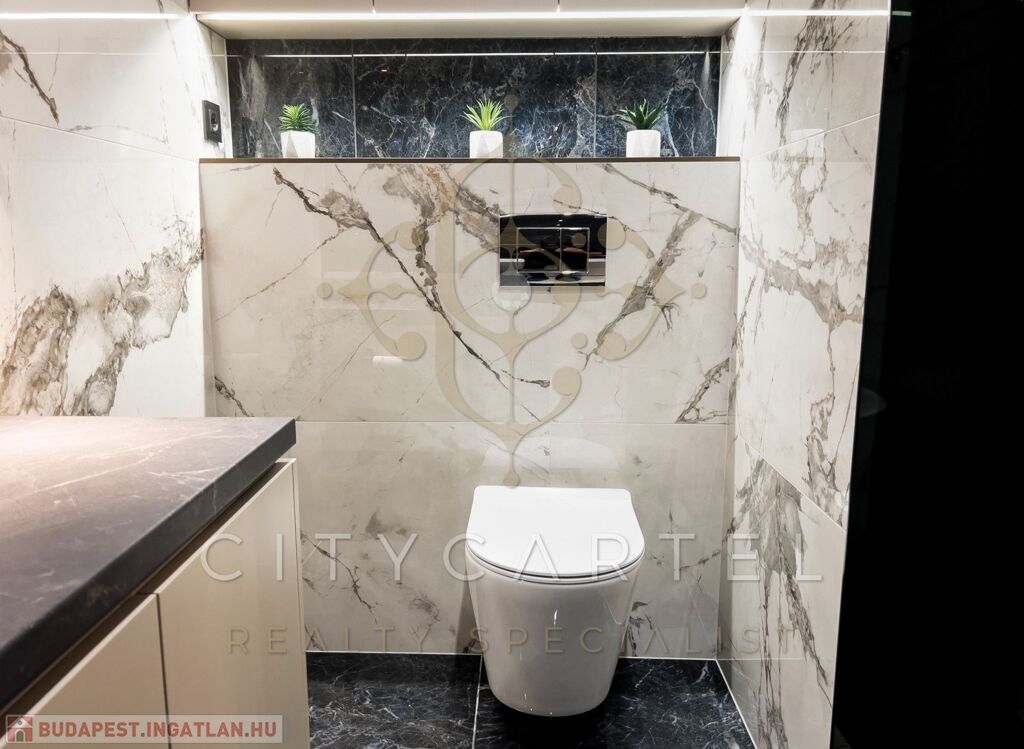A fő hálószoba saját, kádas fürdőszobával és WC-vel rendelkezik, ezen felül pedig egy második, zuhanyzós fürdőszoba is a lakás része, szintén WC-vel.