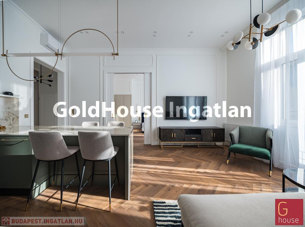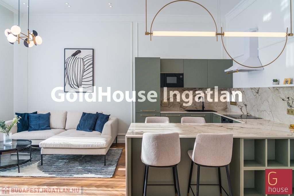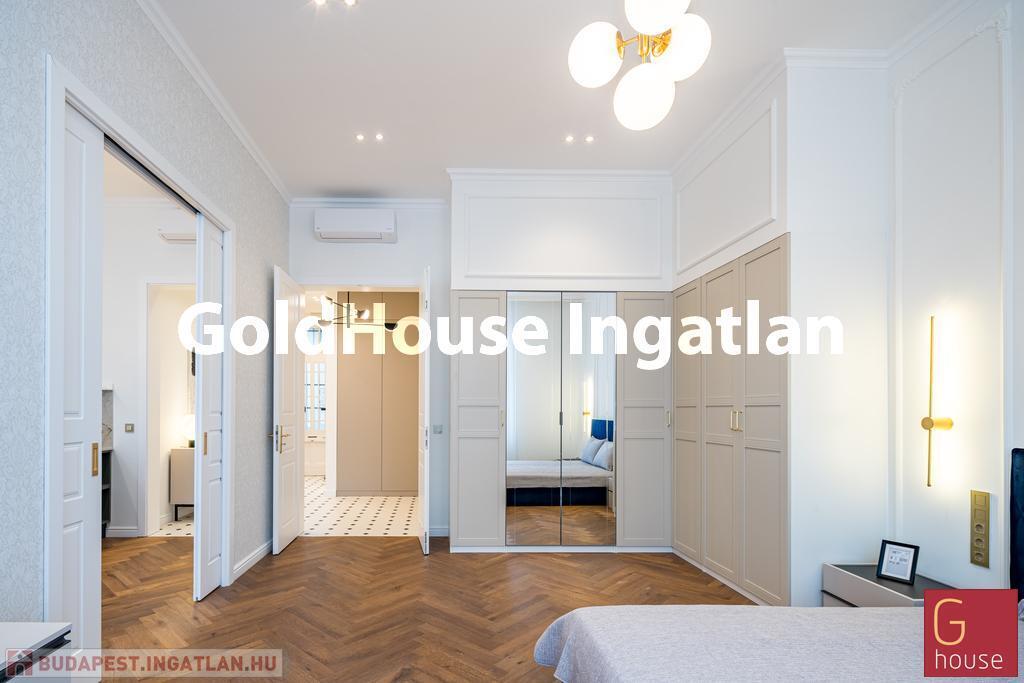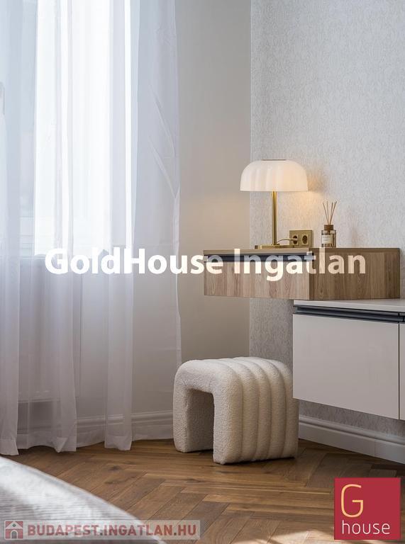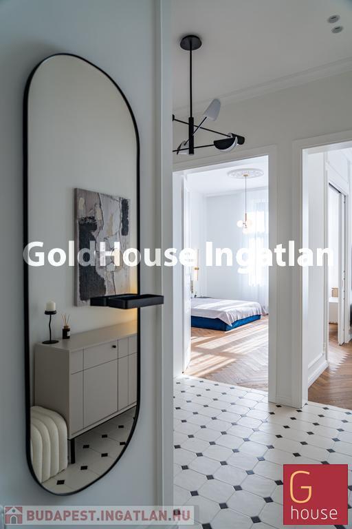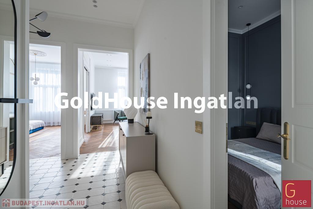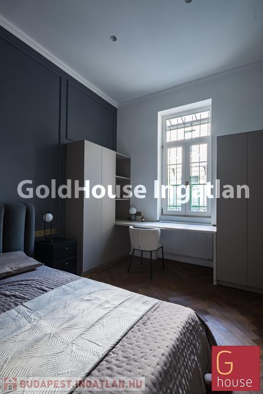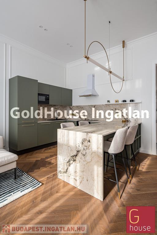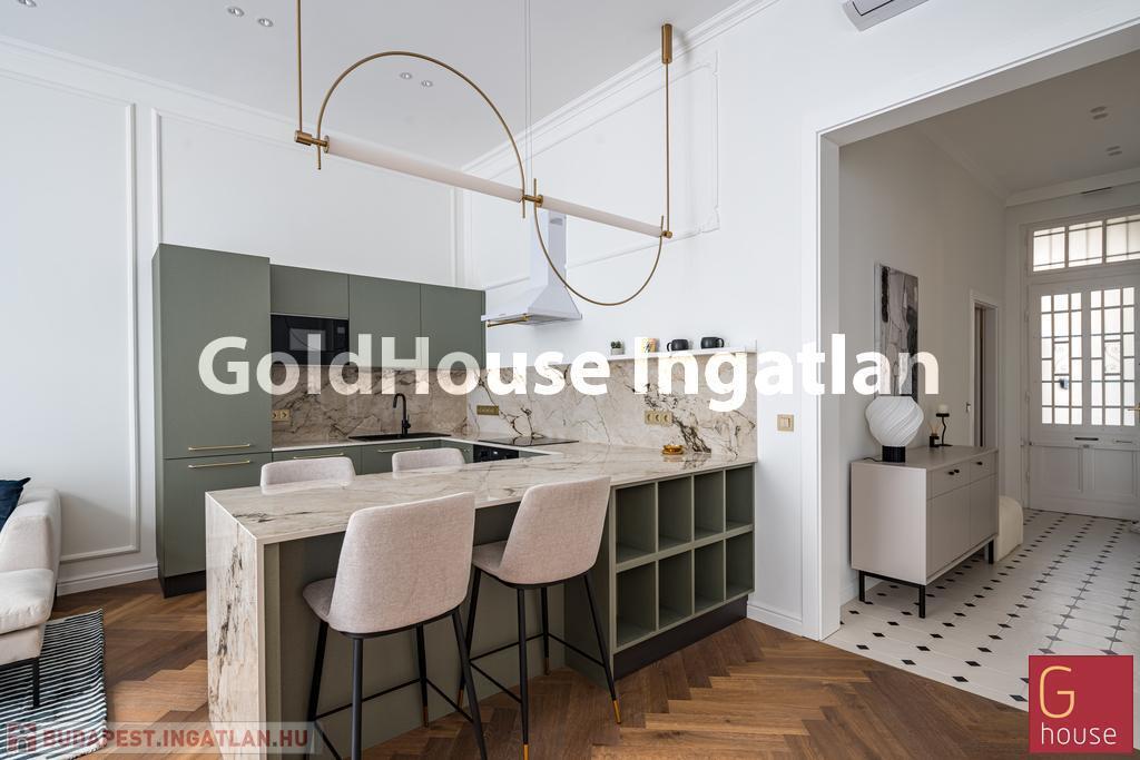 A lakás teljes körű belsőépítészeti felújításon esett át, ahol a klasszikus nagypolgári stílus tökéletesen ötvöződik a modern, letisztult designnal. Prémium minőségű anyagok kerültek beépítésre: spanyol burkolatok, egyedi olasz konyhabútor Neolith kő munkapulttal, eredeti fa parketta és felsőkategóriás gépészet. Az ingatlan teljesen bútorozottan és gépesítve kerül eladásra, így az új tulajdonos azonnal birtokba veheti, felújítás vagy további beruházás nélkül.