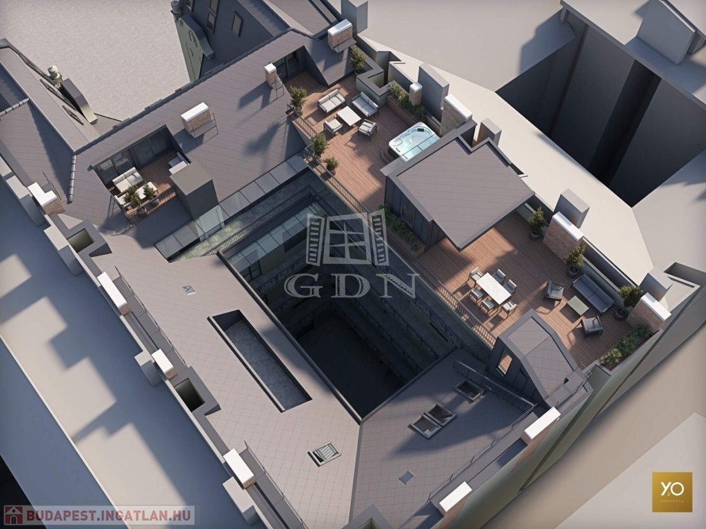 Egy klasszikus épület, melynek teljes körű felújítása során, a legfelső szinten, a padlástéren 4 modern, tetőteraszos okos otthon kerül kialakításra.