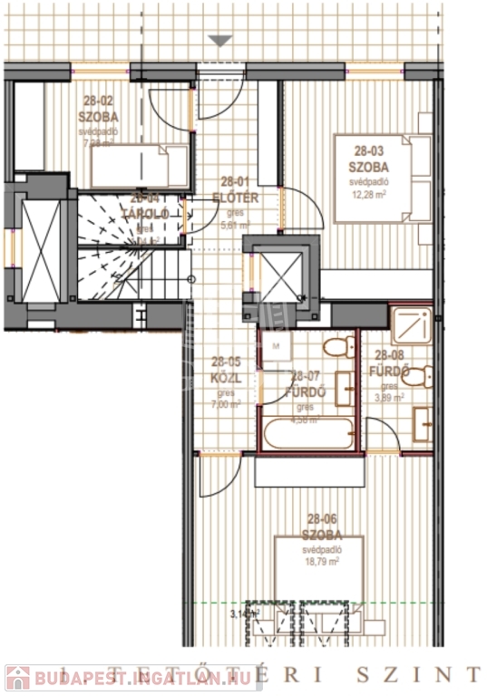Az enteriőrt személyre szabottan alakítjuk ki, így otthonod megfelel az igényeidnek és kifejezi egyediségedet .Az apartman három hálószobához két és fél fürdőszoba tartozik, valamint egy saját tetőterasz is, ahonnan lenyűgöző panoráma tárul elénk. A pontos beosztás az alaprajzon látható.