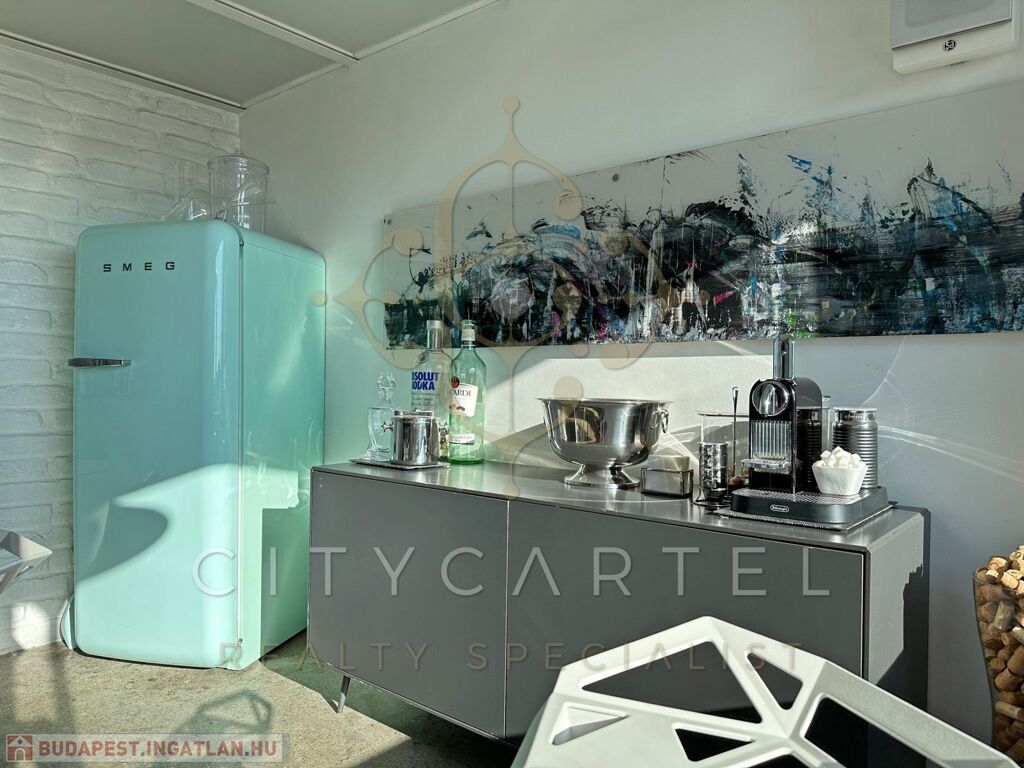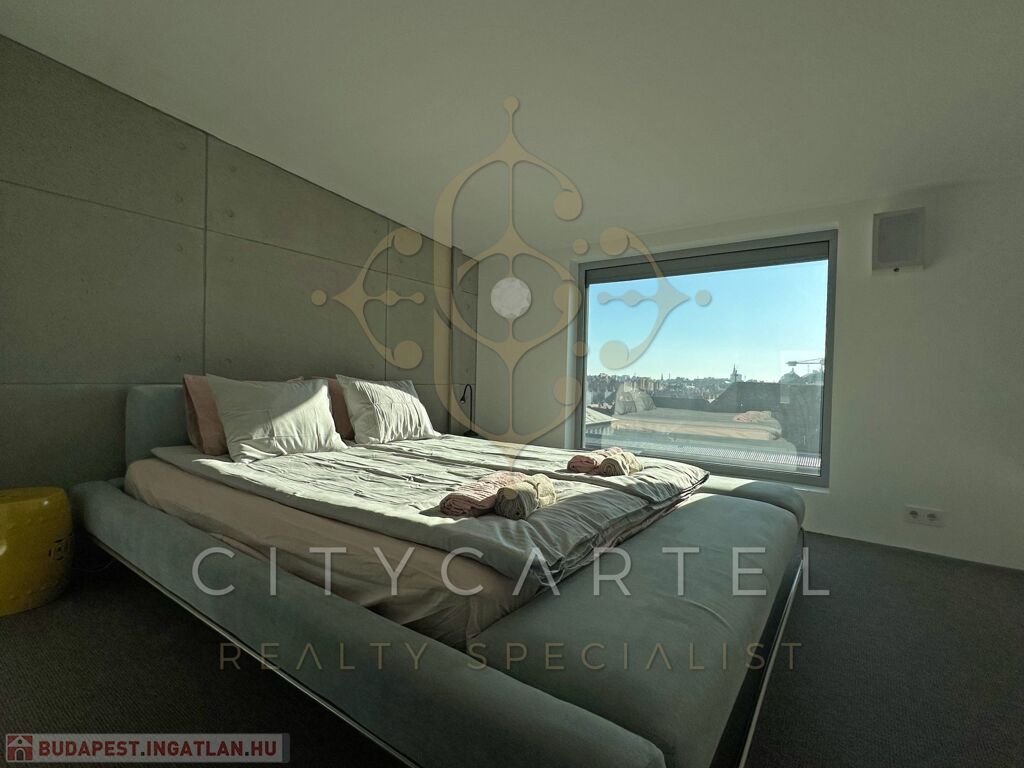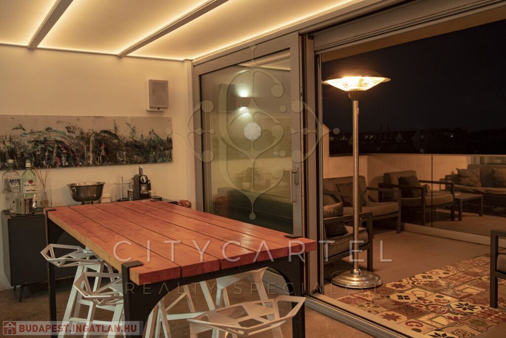 Az ingatlan egyik legkülönlegesebb eleme a hatalmas alumínium nyílászárókon keresztül feltáruló örök panoráma, amely kivételes térérzetet és természetes fényt biztosít. A lakáshoz tartozó 12 nm-es terasz, valamint a tetőterasz valódi városi luxust kínál – tökéletes helyszín pihenéshez, vendégfogadáshoz vagy akár privát rooftop élményekhez.