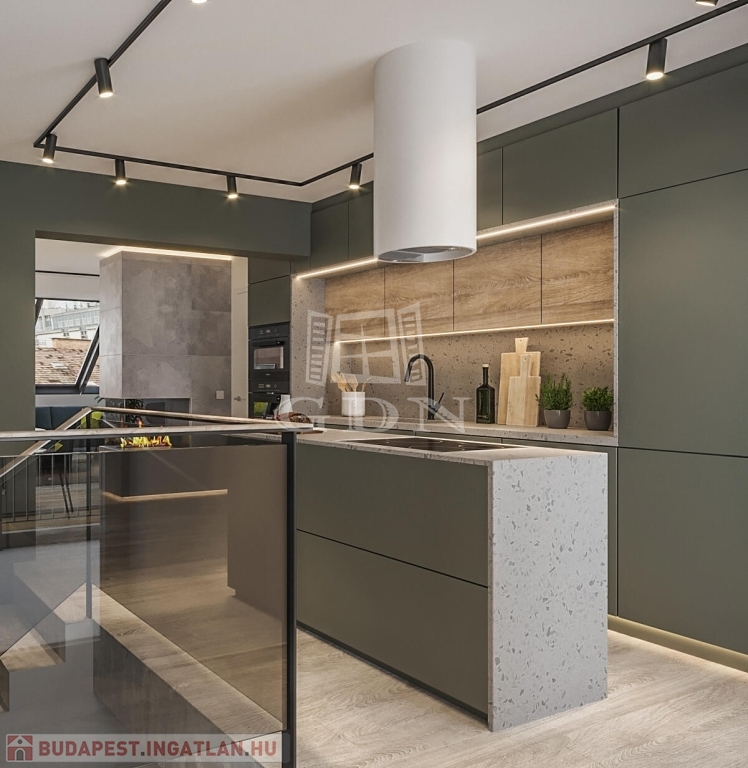 A kubatúrába integrálódó zöld teraszok, tetőteraszok panorámája, modern építészeti térkapcsolatokkal és nagy üvegfelületekkel egyesül. Az így kialakult nyitott tágas és napfényes terek, tovább erősítik az ingatlanok egyediségét. Fontos cél, hogy a lakás belsőépítészeti vezetéssel, intelligens megoldásokkal lett kialakítva. Kiemelt figyelmet kapott az anyagok minősége és a beépített technológia.