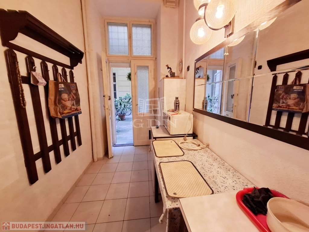 Nagykörúton belül, Nagymező utcában Eladó egy 120 nm-es alapterületű + 20 nm-es galériás utcai bejáratú üzlethelyiség, amihez tartozik a házban egy magasföldszinti 47 nm-es, 2 galériás, 1+1 félszobás, gázkonvektoros fűtésű, közepes állapotú lakás.
