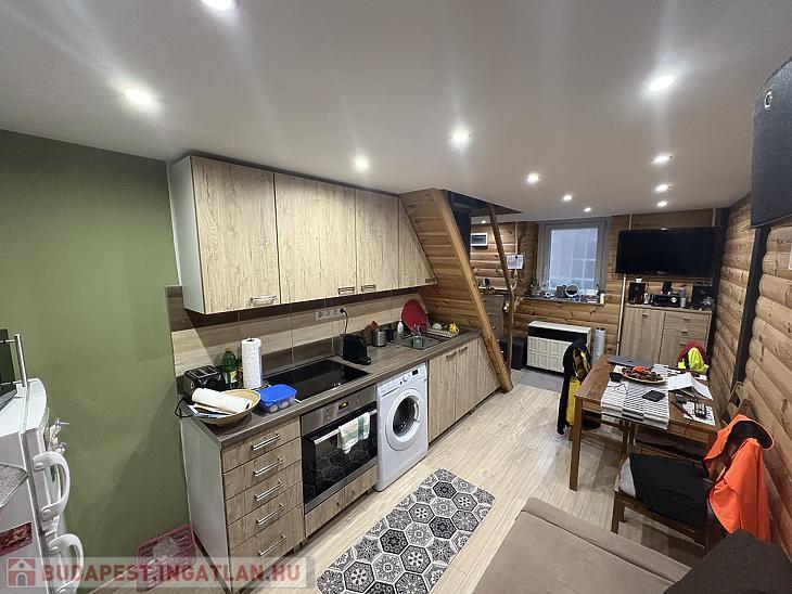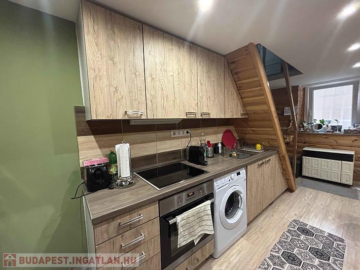 Az ingatlan 19 m² alapterületű, amelyet egy 17 m²-es, teljes belmagasságú állógaléria egészít ki – így a hasznos tér kényelmesen megnövekszik. A lakás okosan kialakított: a galérián tágas hálórész, a földszinten pedig nappali, konyha és zuhanyzós fürdőszoba található.