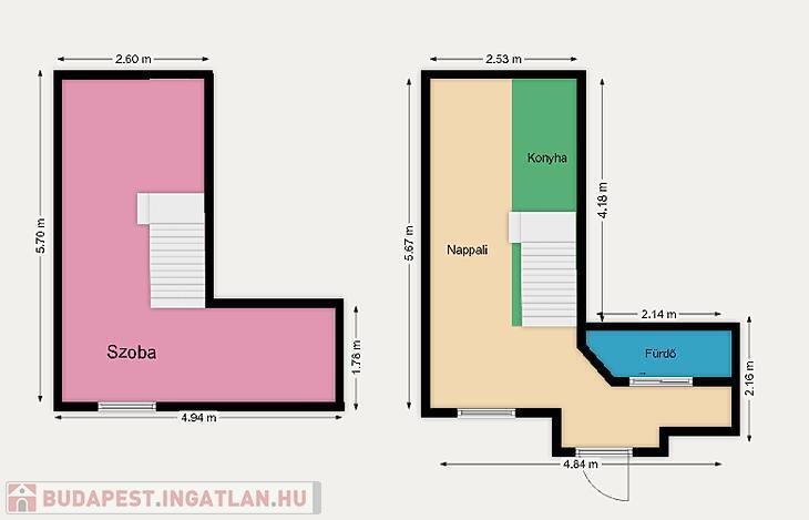 Az ingatlan 19 m² alapterületű, amelyet egy 17 m²-es, teljes belmagasságú állógaléria egészít ki – így a hasznos tér kényelmesen megnövekszik. A lakás okosan kialakított: a galérián tágas hálórész, a földszinten pedig nappali, konyha és zuhanyzós fürdőszoba található. A konyha teljesen gépesített, modern háztartási gépekkel felszerelt.