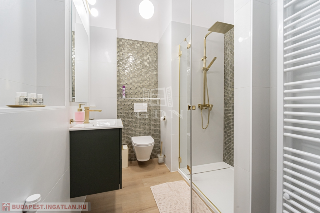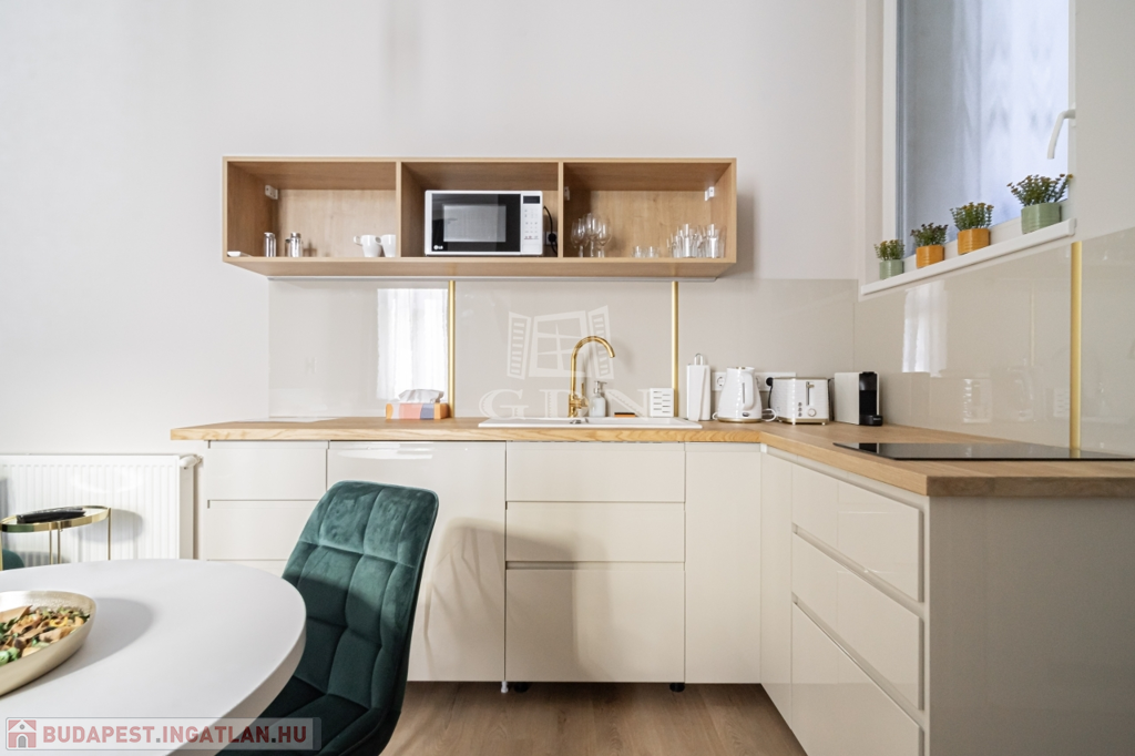 Az ingatlant két részre osztották, egy 30 nm-es és egy 41 nm-es teljeskőrüen felújított, rövidtávú kiadásra kialakított és felszerelt lakás lett belőle, melyet a teljes berendezéssel együtt, a képeken látható állapotban, ügyvédi használati megosztással értékesítünk.