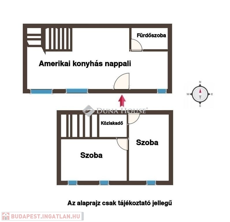 A rendezett ház földszinti, világos lakása csendes, de központi elhelyezkedésű. Modern, elektromos fűtésű, alacsony rezsijű: lent amerikai konyhás nappali és fürdő, fent két hálószoba található.