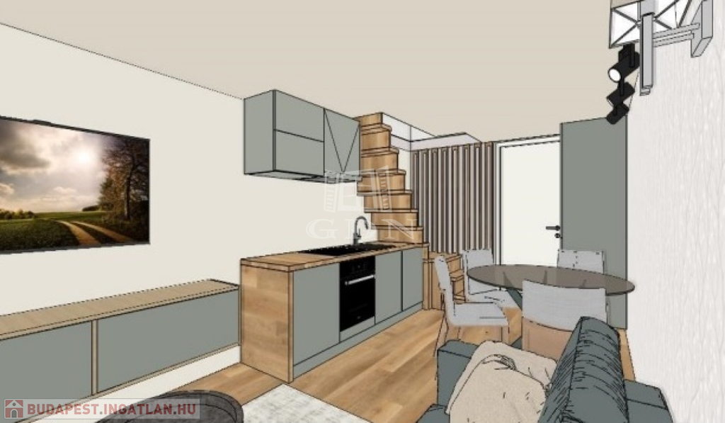 Eladó egy luxus kivitelezésű 50,45 m2-es, belső kétszintes ingatlan (fsz. belmagassága: 210cm, emeleten: 192cm), mely modern megoldásokkal felszerelt, mint az elektromos padlófűtés és hűtő-fűtő klímák.