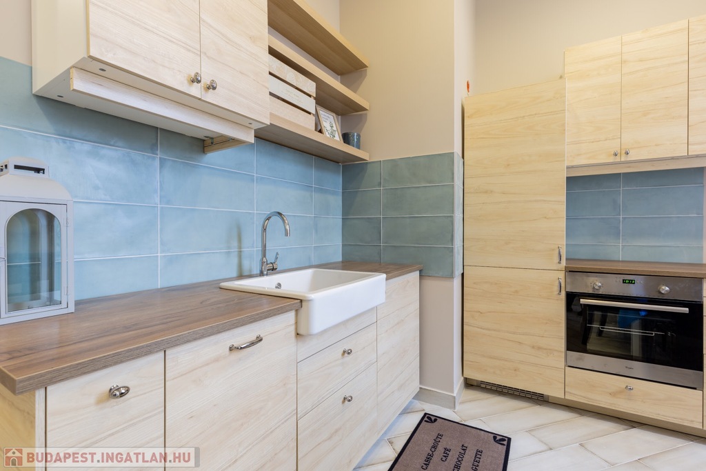 Prémium módon, lakberendező tervei alapján felújított lakás, gépesített konyhával, bútorokkal. A lakás nagy nappalival, egy nagyobb és egy kisebb hálószobával rendelkezik, de könnyen kialakítható még egy szoba, amennyiben két gyerekkel költöznél. Az irányár tartalmazza a beépített gépeket és bútorokat, illetve további bútorok jelentős részét.