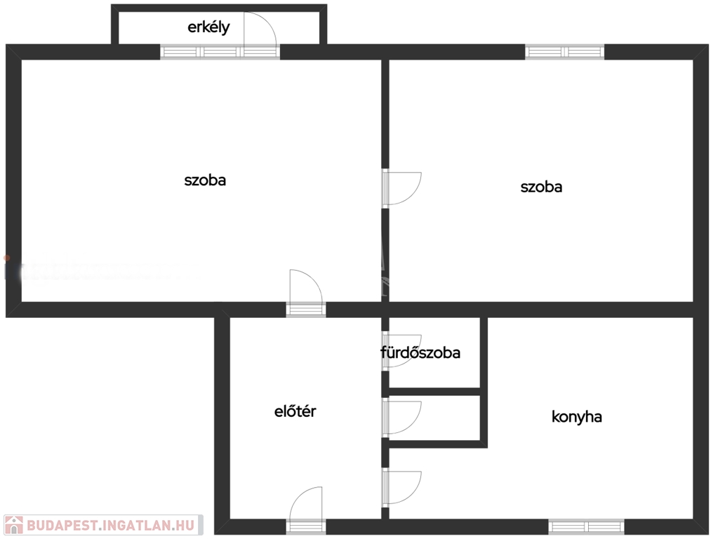 Az ingatlan jelenlegi kialakítása két szobából áll, ugyanakkor az átgondolt alaprajz lehetőséget biztosít a belső terek rugalmas újragondolására. A jelenleg udvarra néző konyha külön hálószobává alakítható, míg a lakás központi tere egy amerikai konyhás nappali lehet, így akár két hálószobás elrendezés is könnyedén megvalósítható.