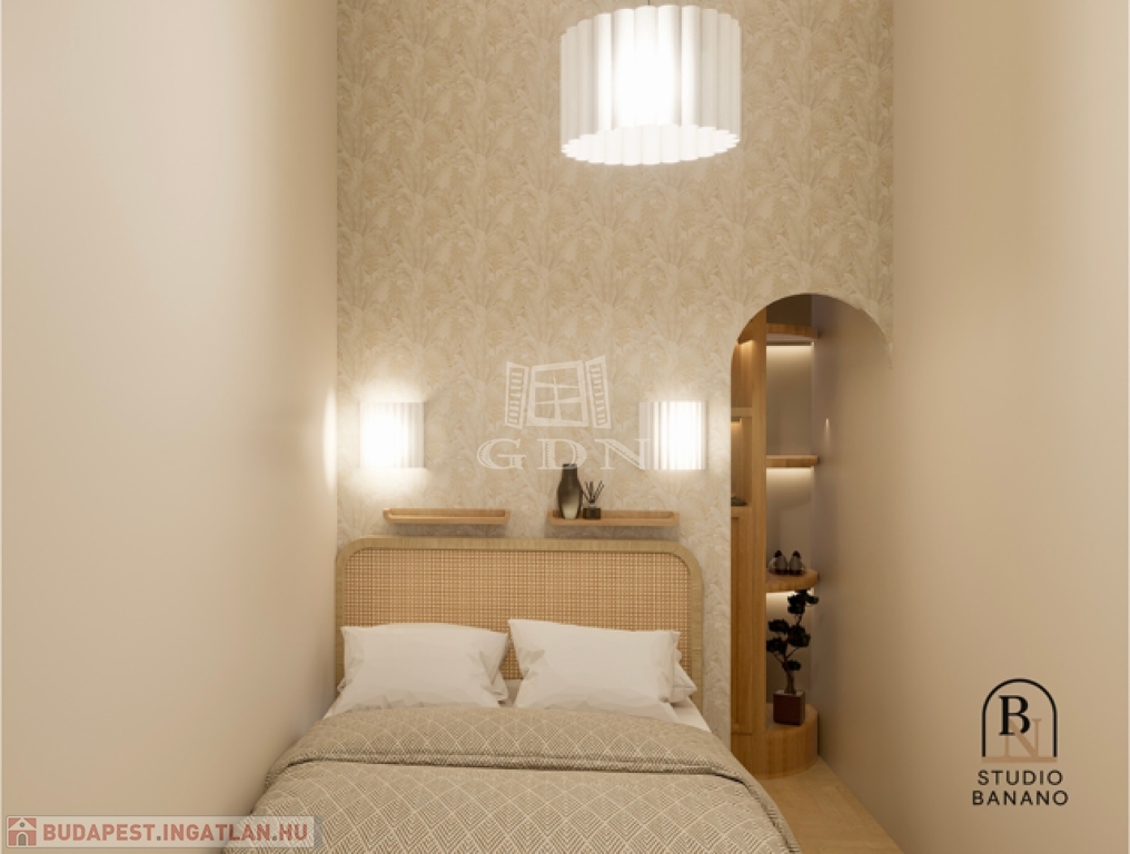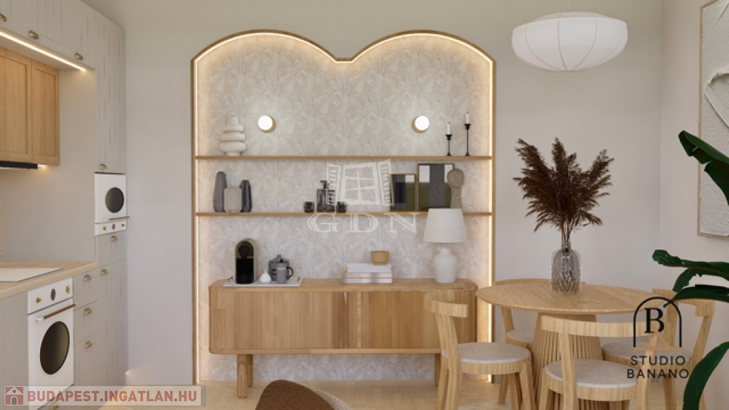 A 44m2-es lakás átalakítása során a beosztása fiatalos és tágas lett. A rendezett, kellemes társasház földszintjén található egy belső udvar. Innen belépve a lakásba, tágas előtérben találjuk magunkat, ahonnan balra a hálószóba nyílik, gardróbbal, szemben a fürdő és wc helyiség található, míg jobbra a tágas nappali vár minket.
